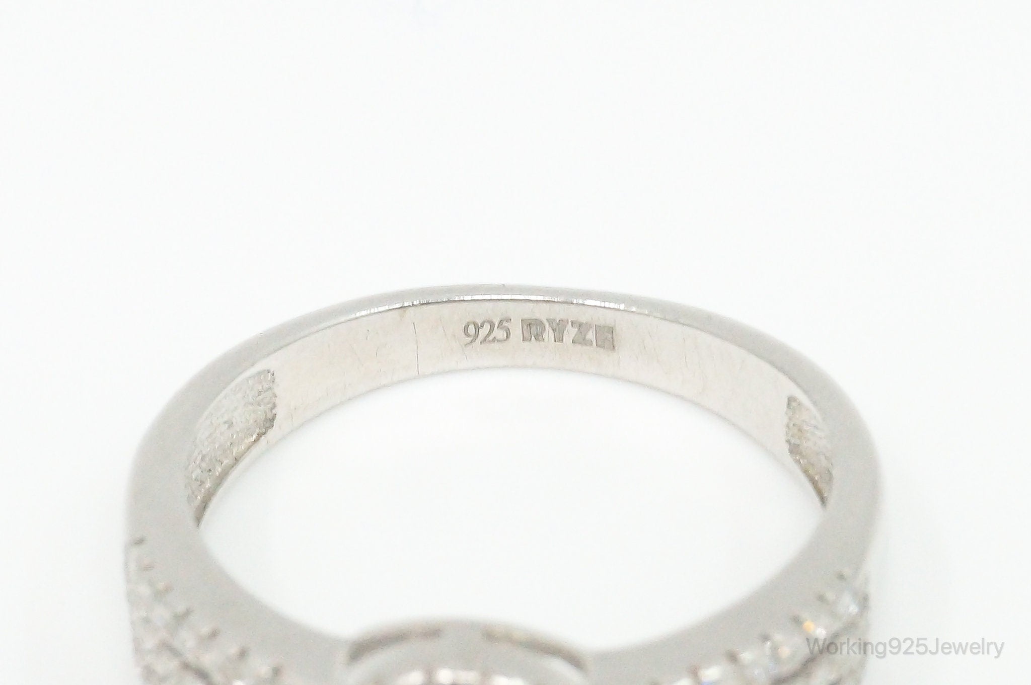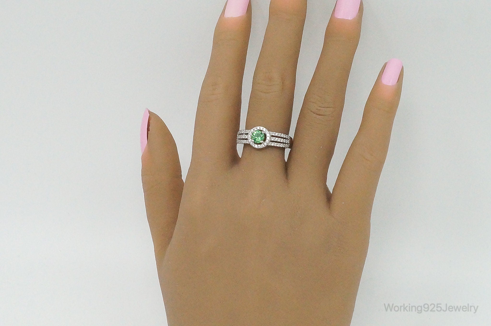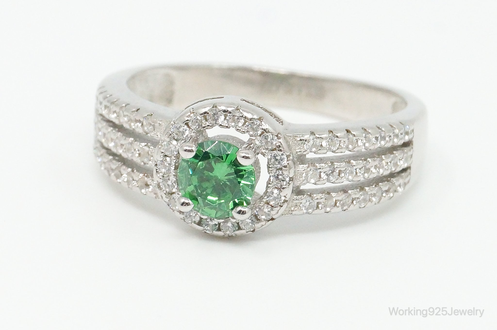 Green Cubic Zirconia Sterling Silver Ring - Size 8.75