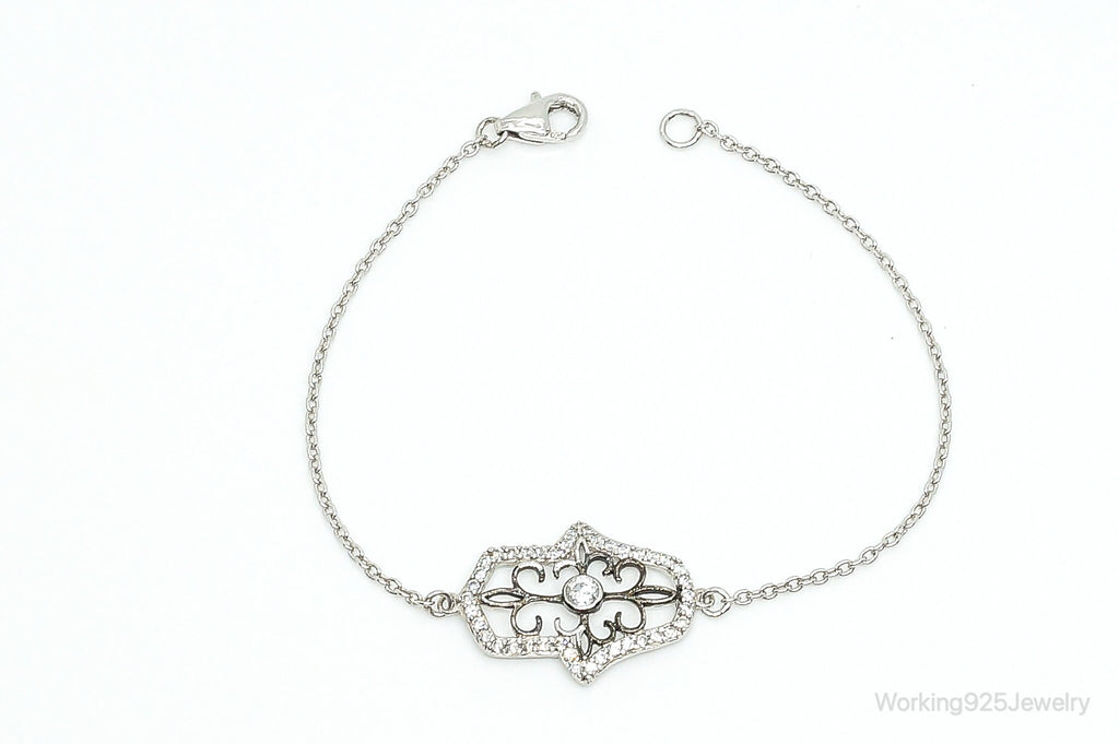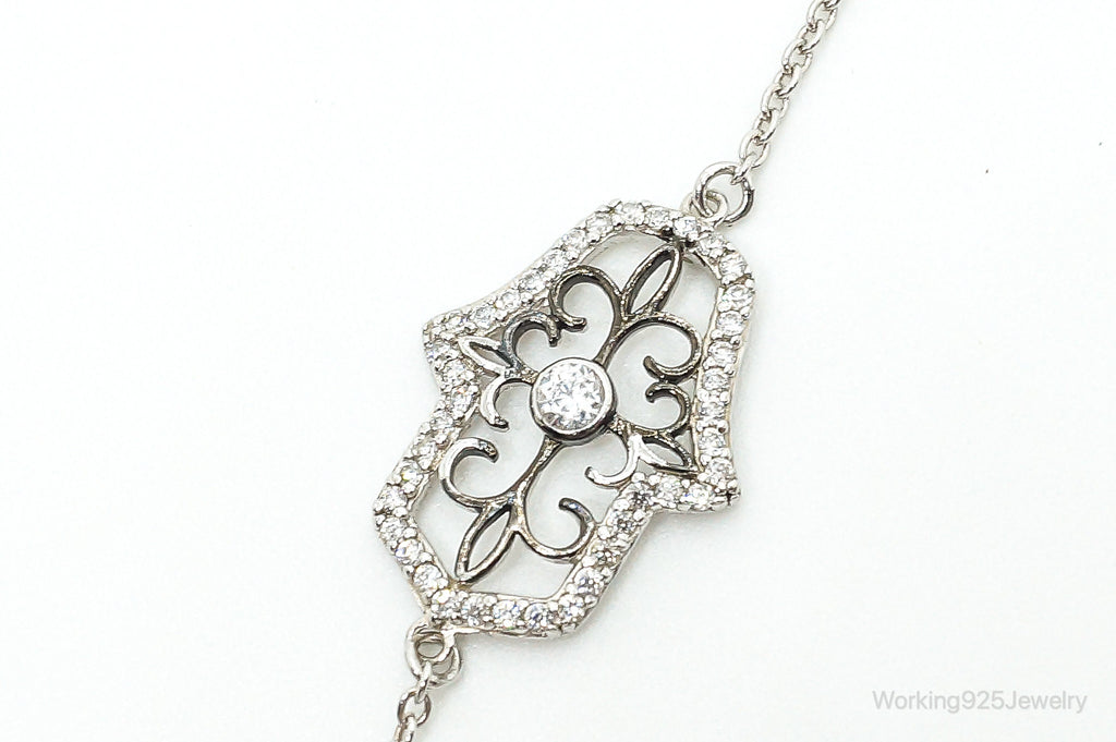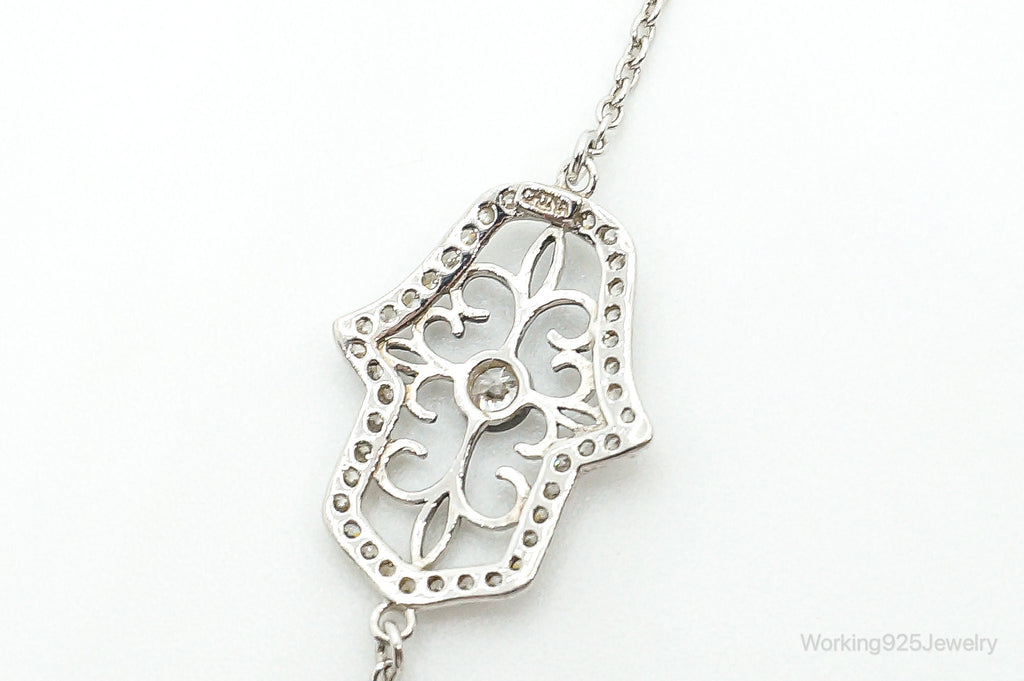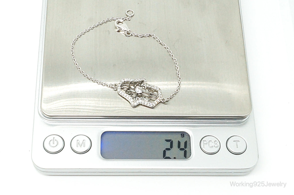 Hand Of Fatima Cubic Zirconia Sterling Silver Bracelet