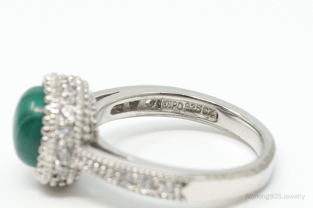 Joseph Esposito Espo Malachite Cubic Zirconia Sterling Silver Ring Size 6.25