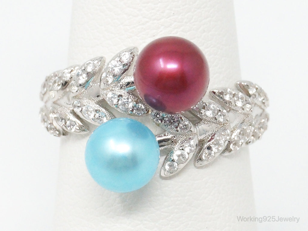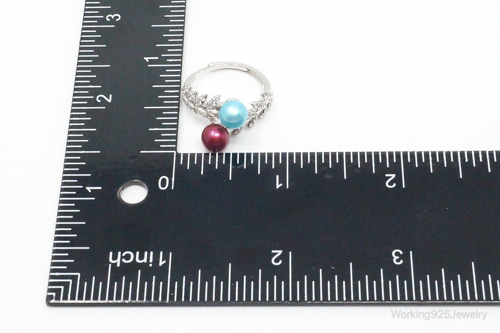Lab Pearls Cubic Zirconia Sterling Silver Ring Size - 6.25 Adjustable