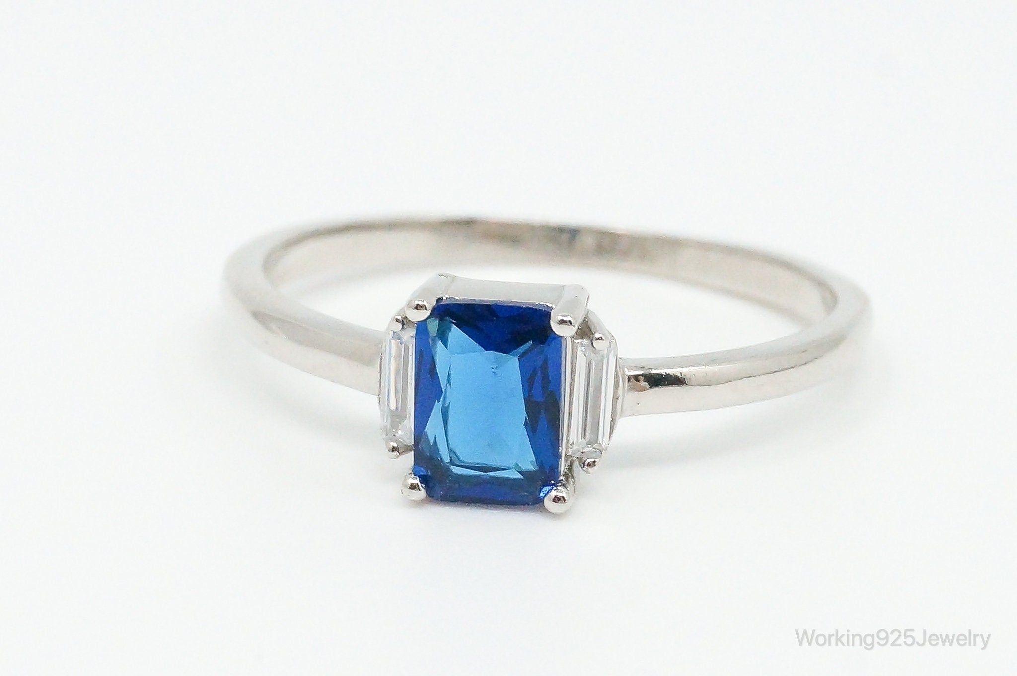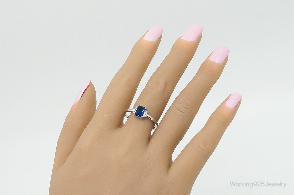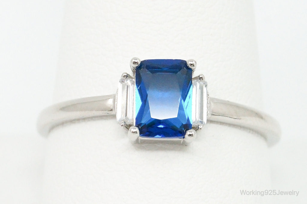 Lab Sapphire Cubic Zirconia Sterling Silver Ring - Size 10.5