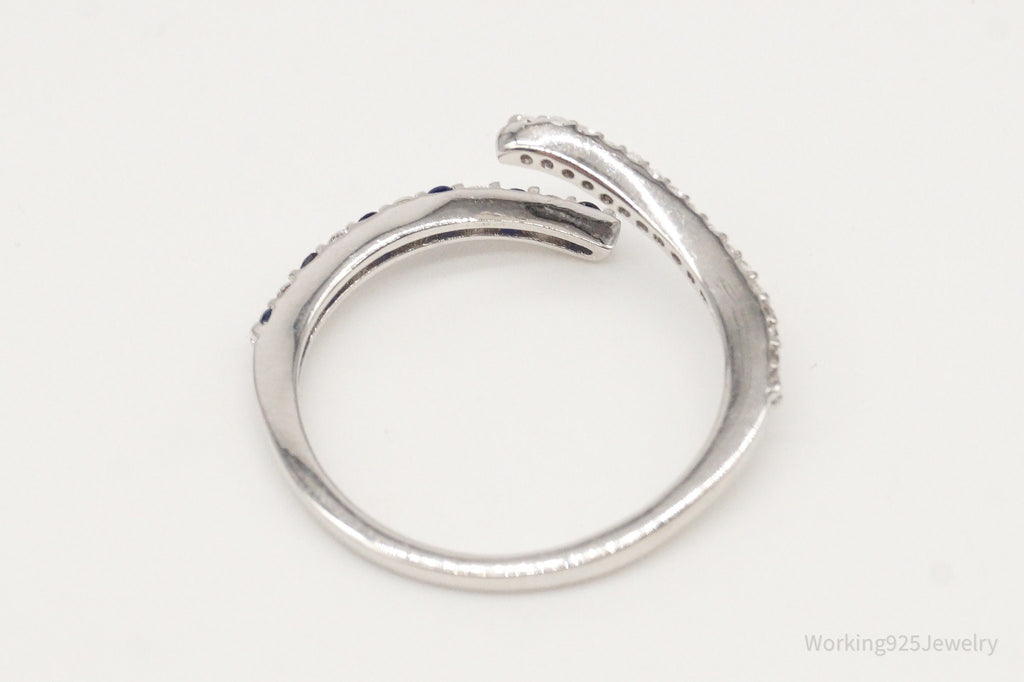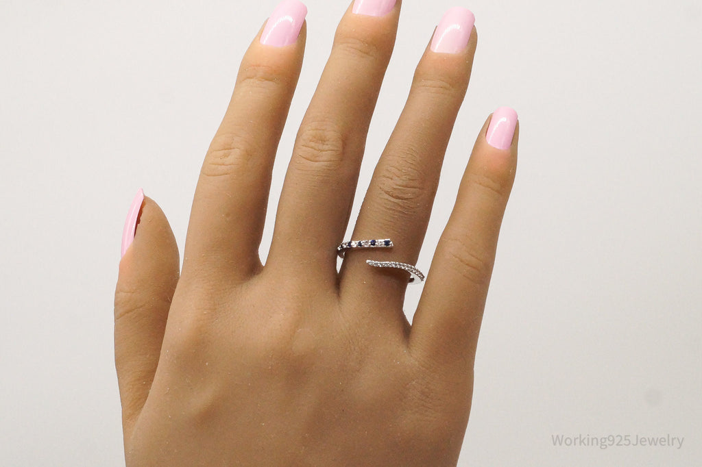 Lab Sapphire Cubic Zirconia Sterling Silver Wrap Ring - Size 7.5 Adjustable