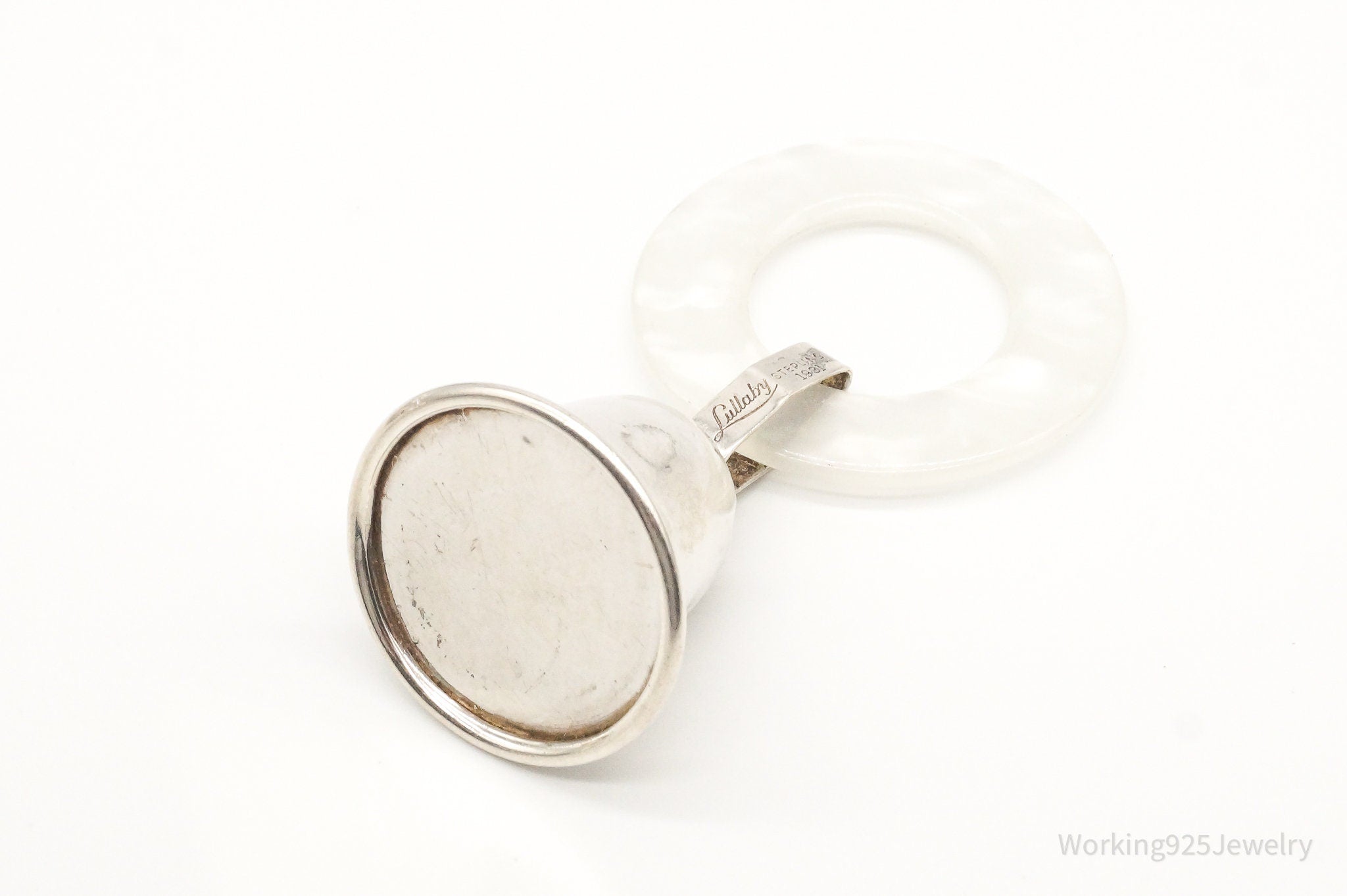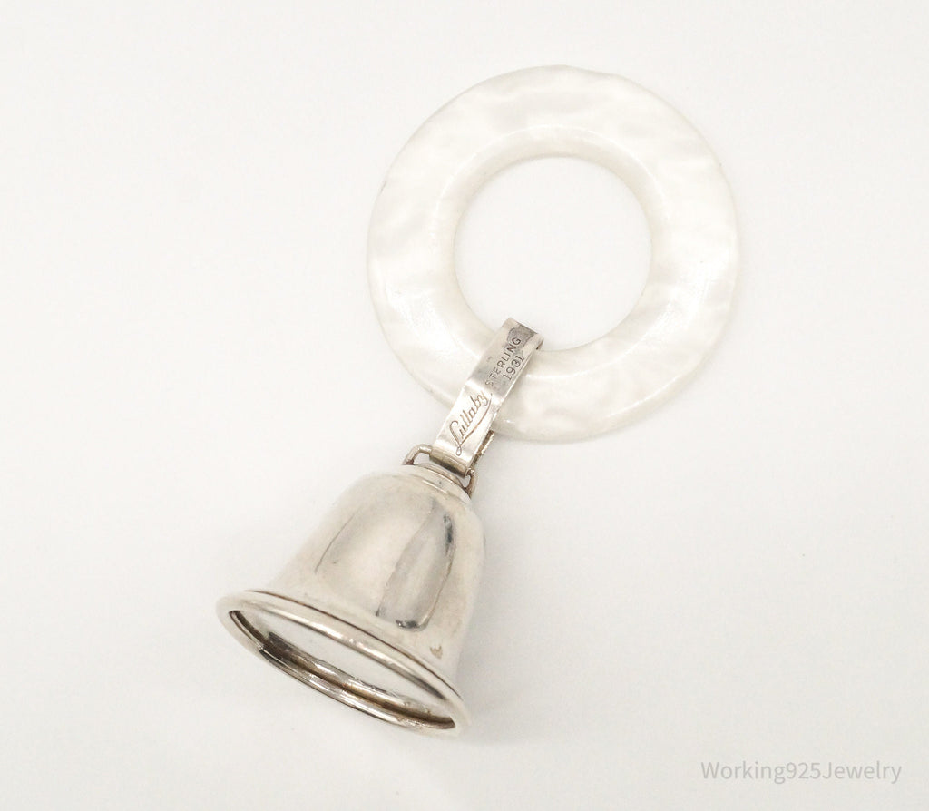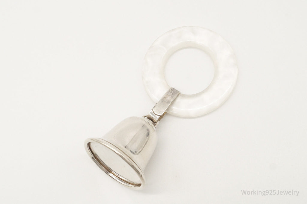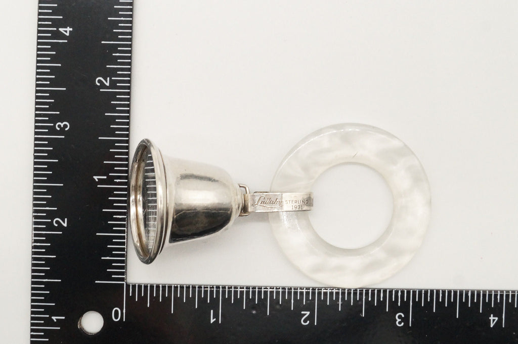 Large 1930s Lullaby Bell Lucite Sterling Silver Baby Rattle