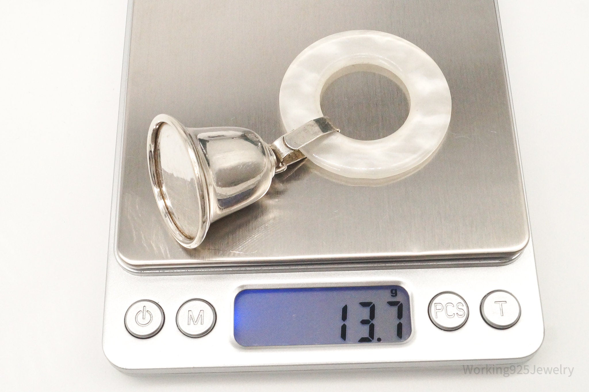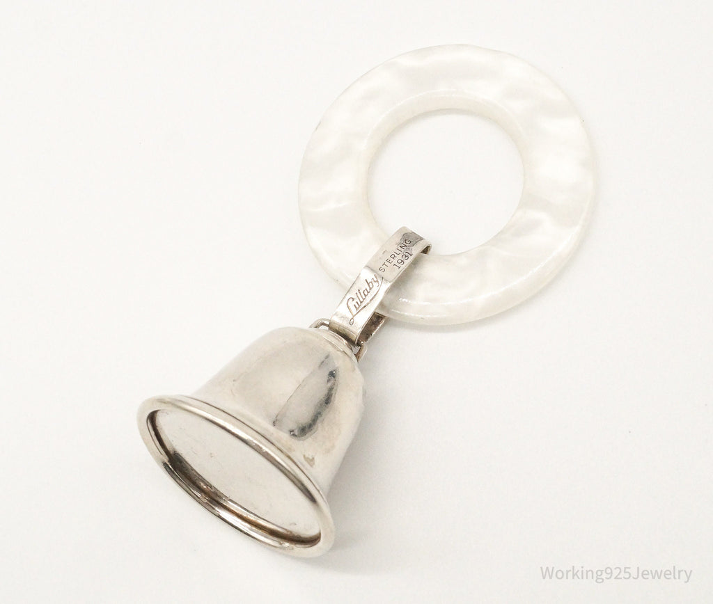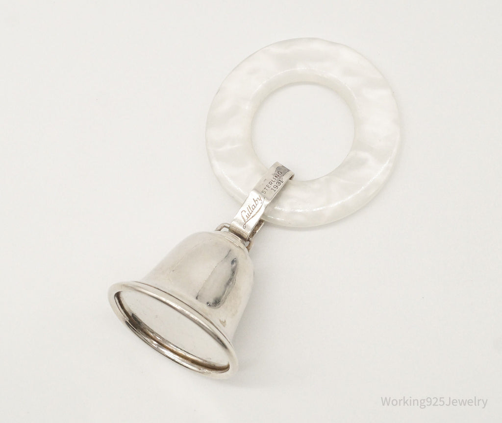 Large 1930s Lullaby Bell Lucite Sterling Silver Baby Rattle