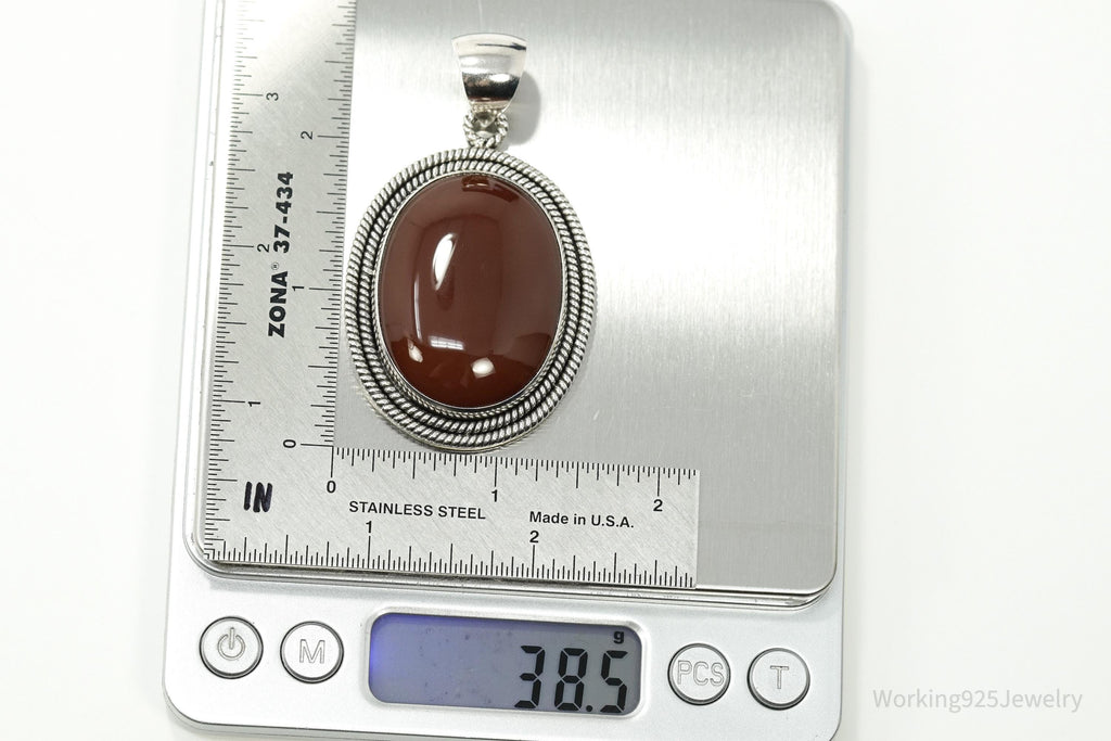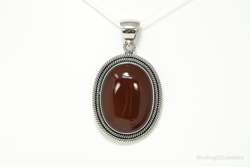 Large Carnelian Sterling Silver Pendant • Vintage BA Suarti Designer Jewelry