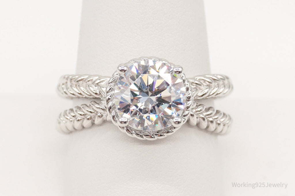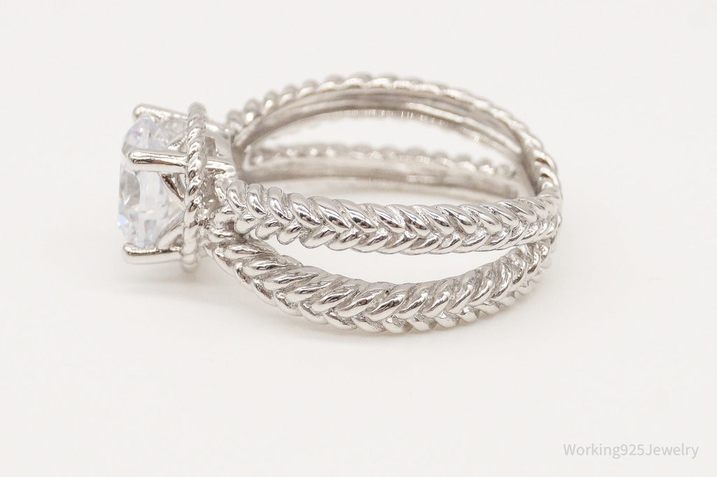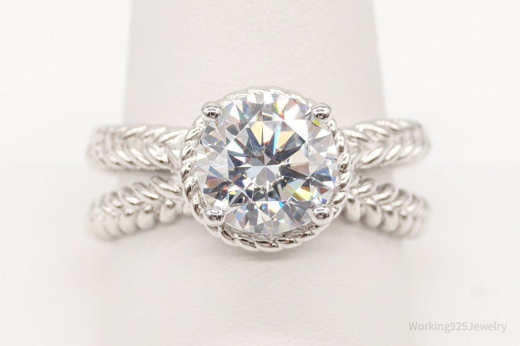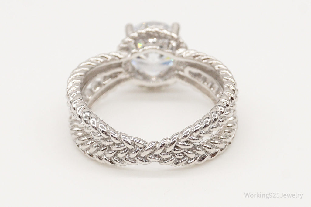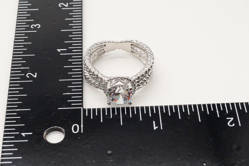 Large Cubic Zirconia Sterling Silver Ring - Size 10