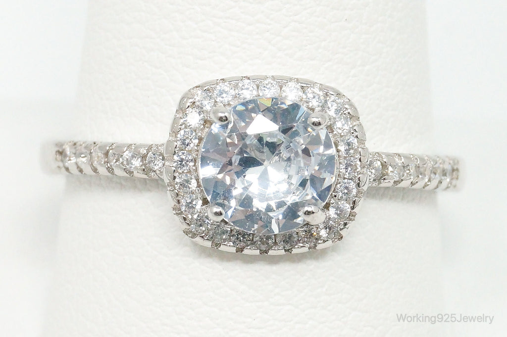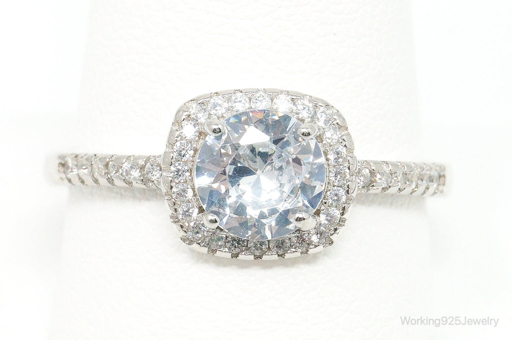 Large Cubic Zirconia Sterling Silver Ring - Size 11