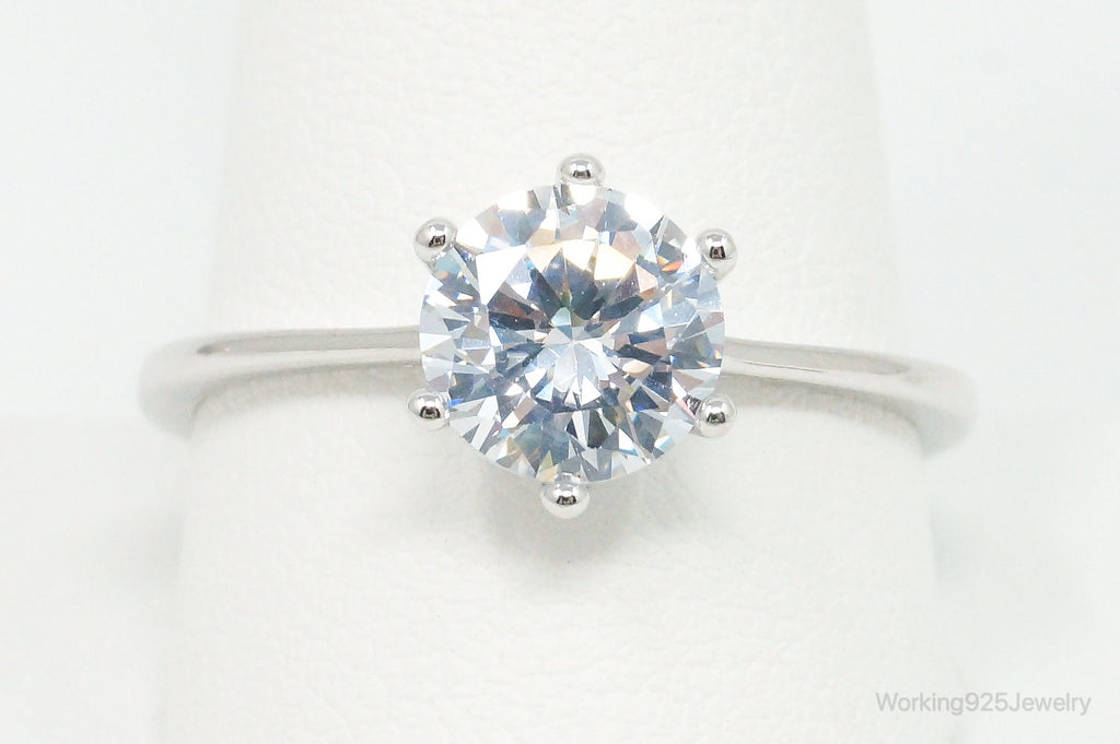 Large Cubic Zirconia Sterling Silver Ring - Size 11