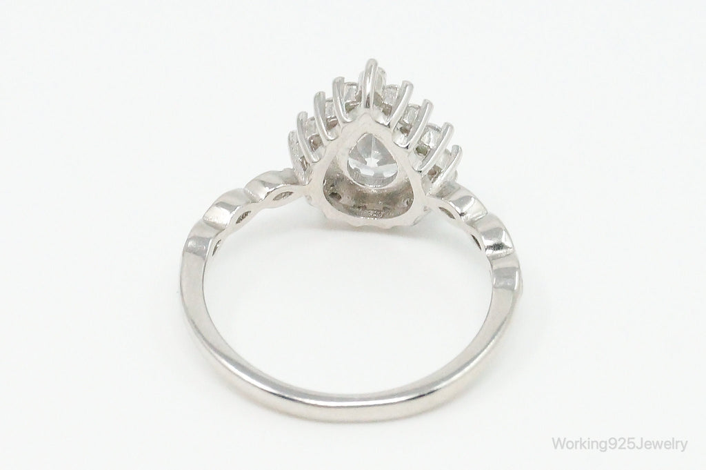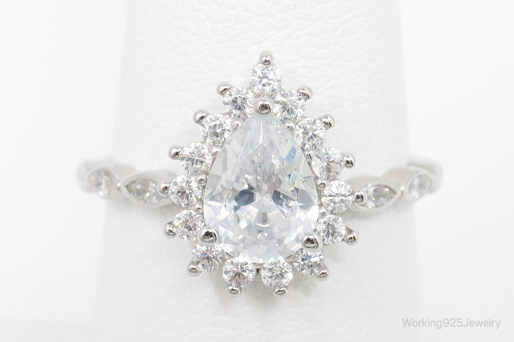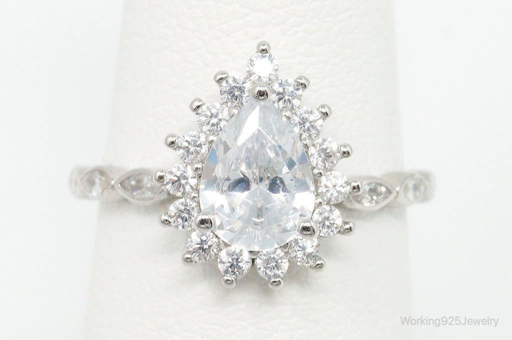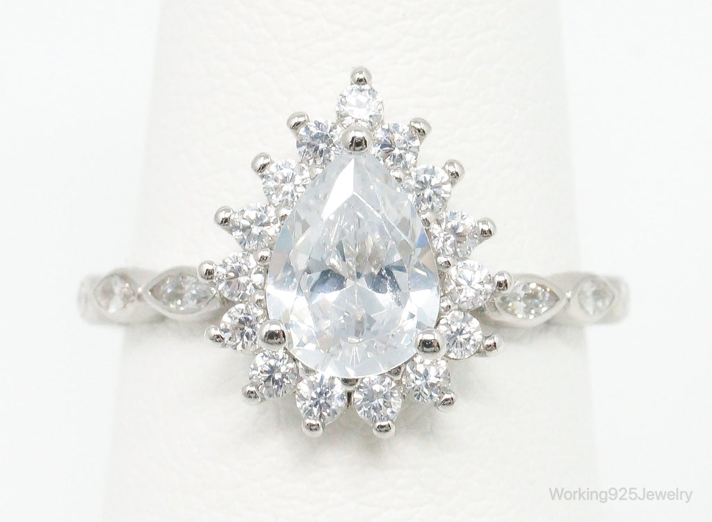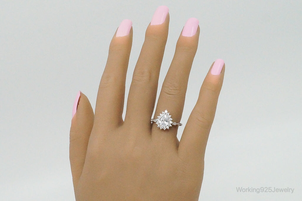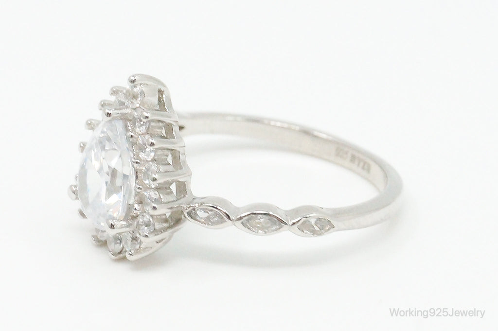 Large Cubic Zirconia Sterling Silver Statement Ring - Size 7