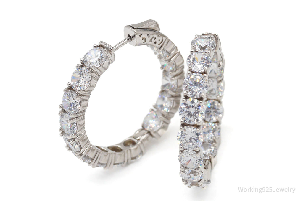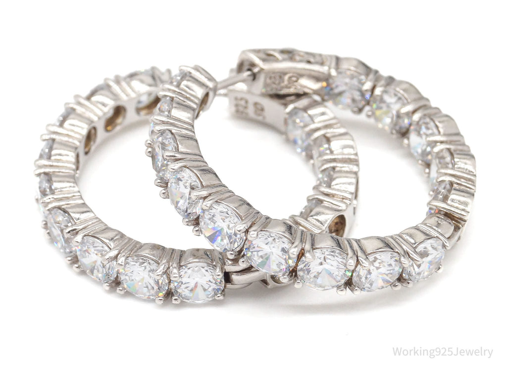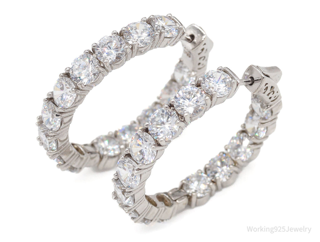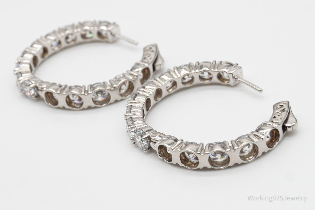 Large Designer Cubic Zirconia Rhodium Over Sterling Silver Hoop Earrings