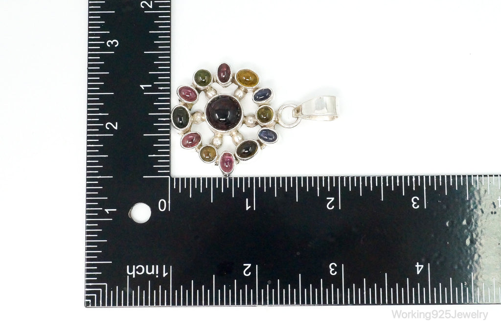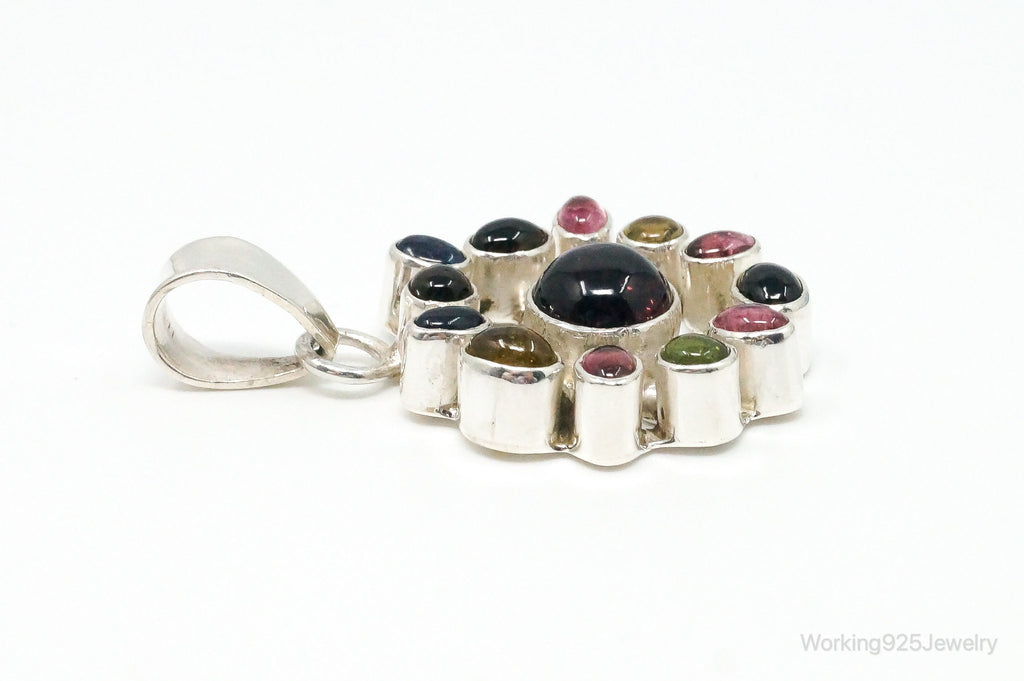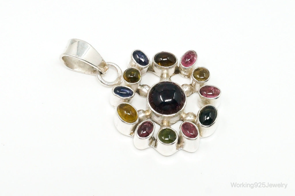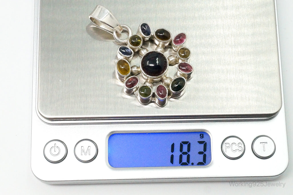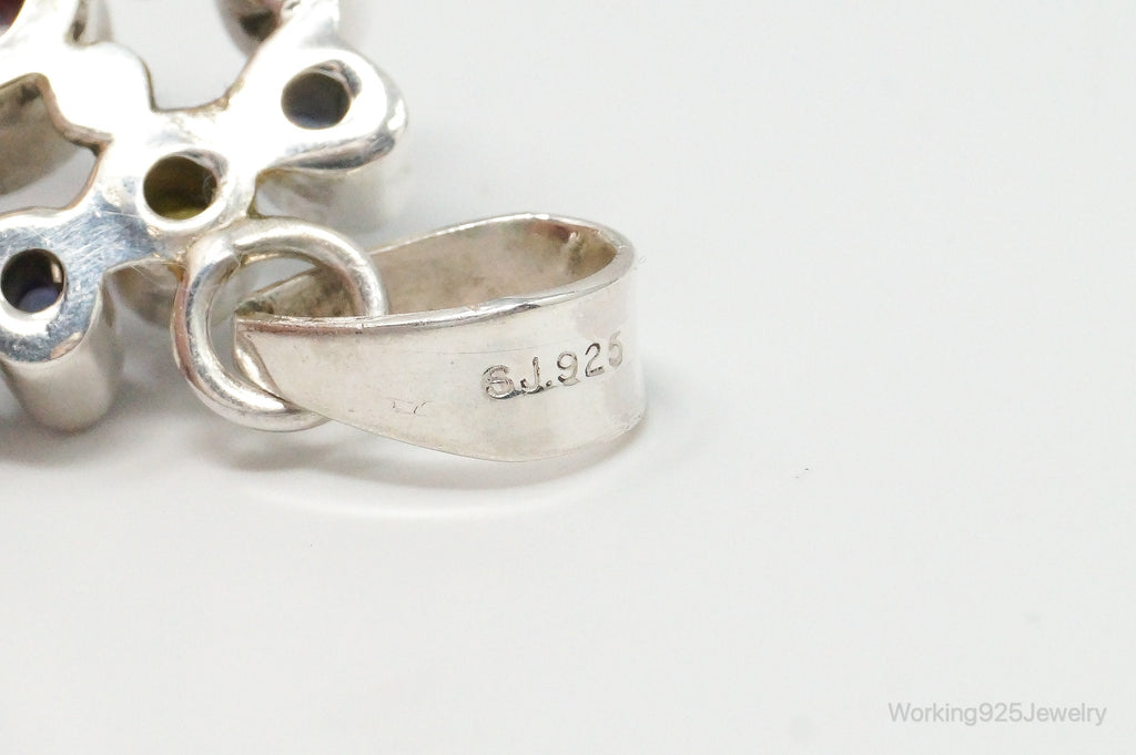 Large Designer SJ Multi Gem Sterling Silver Necklace Pendant