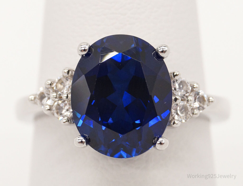 Large Lab Sapphire Cubic Zirconia Sterling Silver Ring - Size 6.75