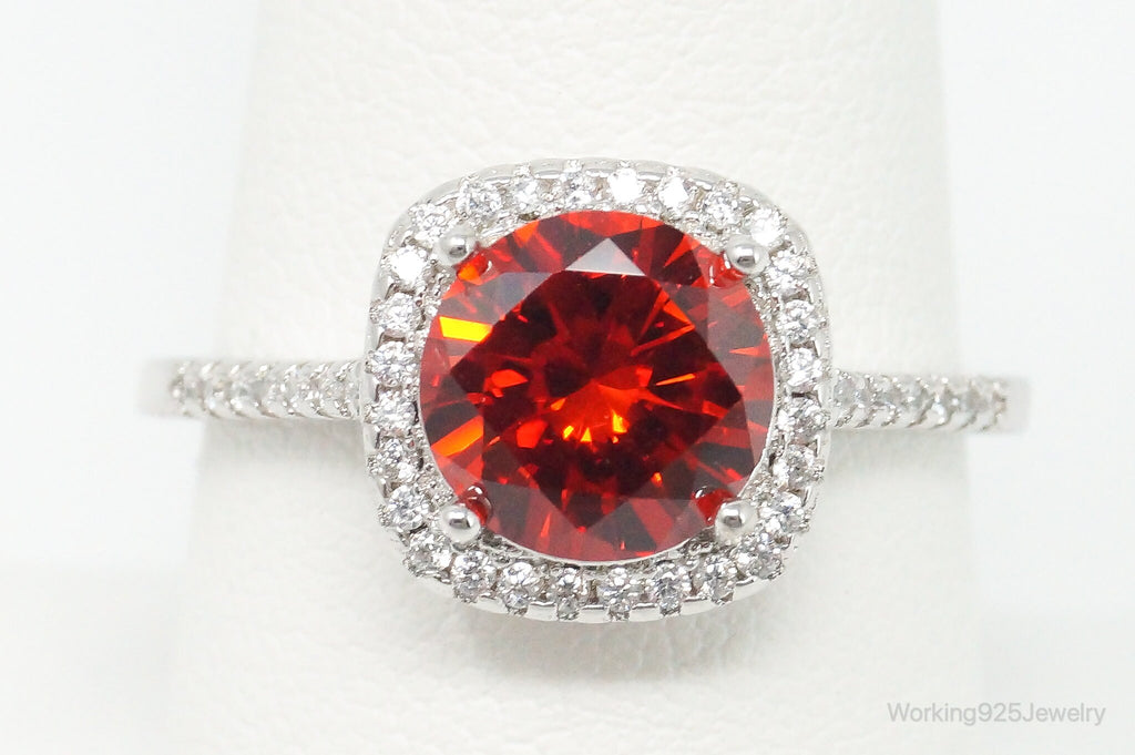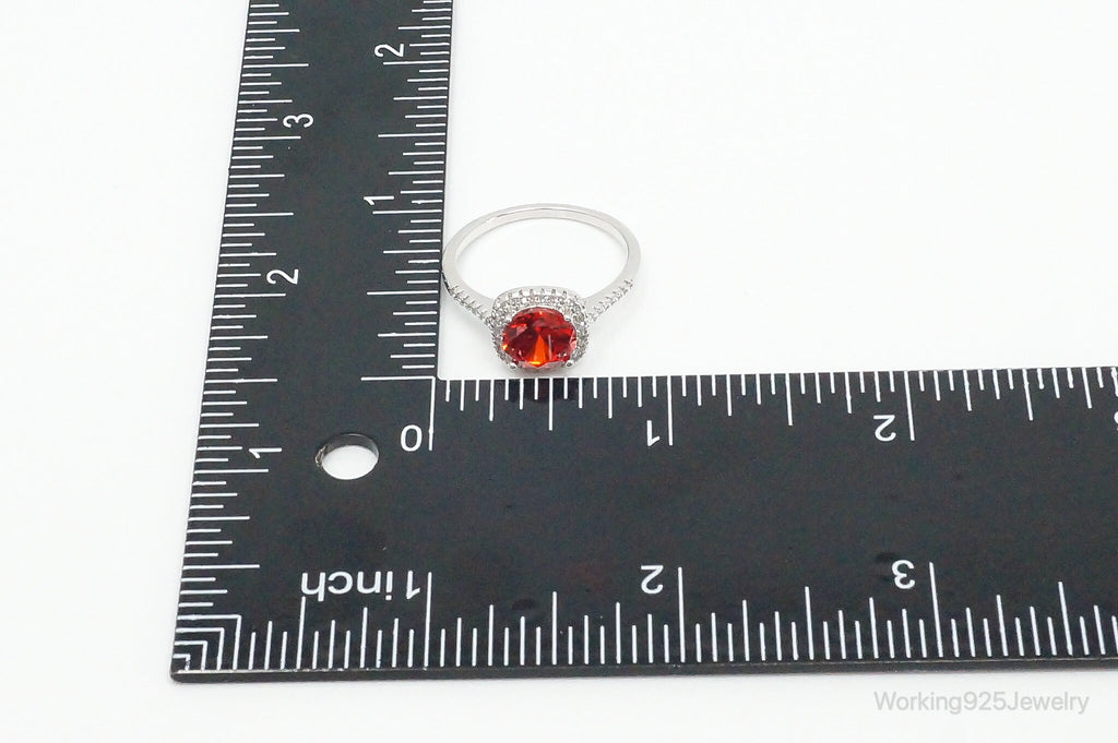 Large Orange & White Cubic Zirconia Sterling Silver Ring - Size 8.75