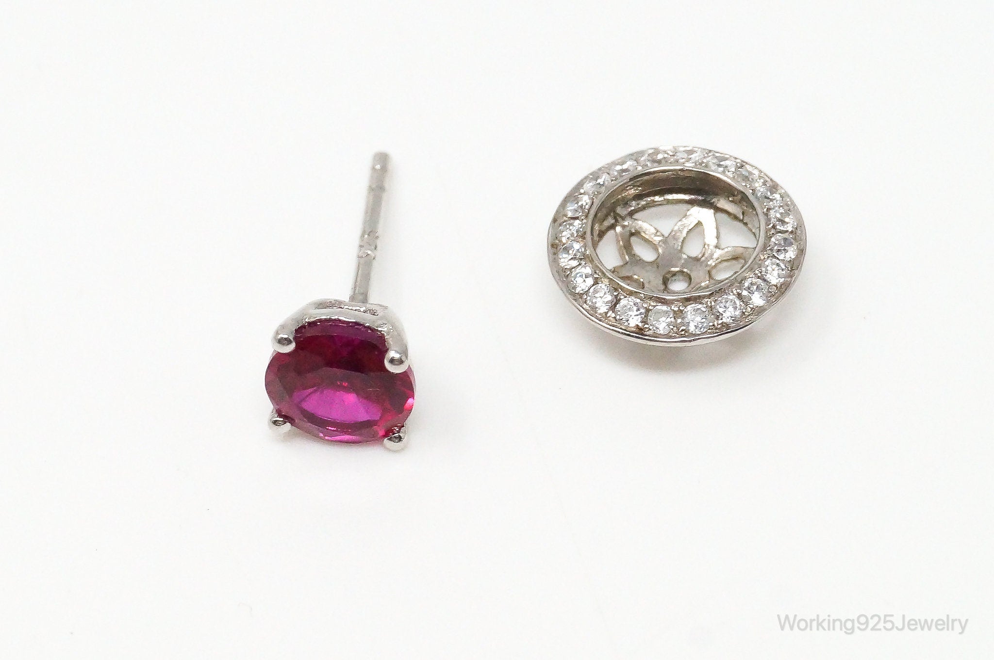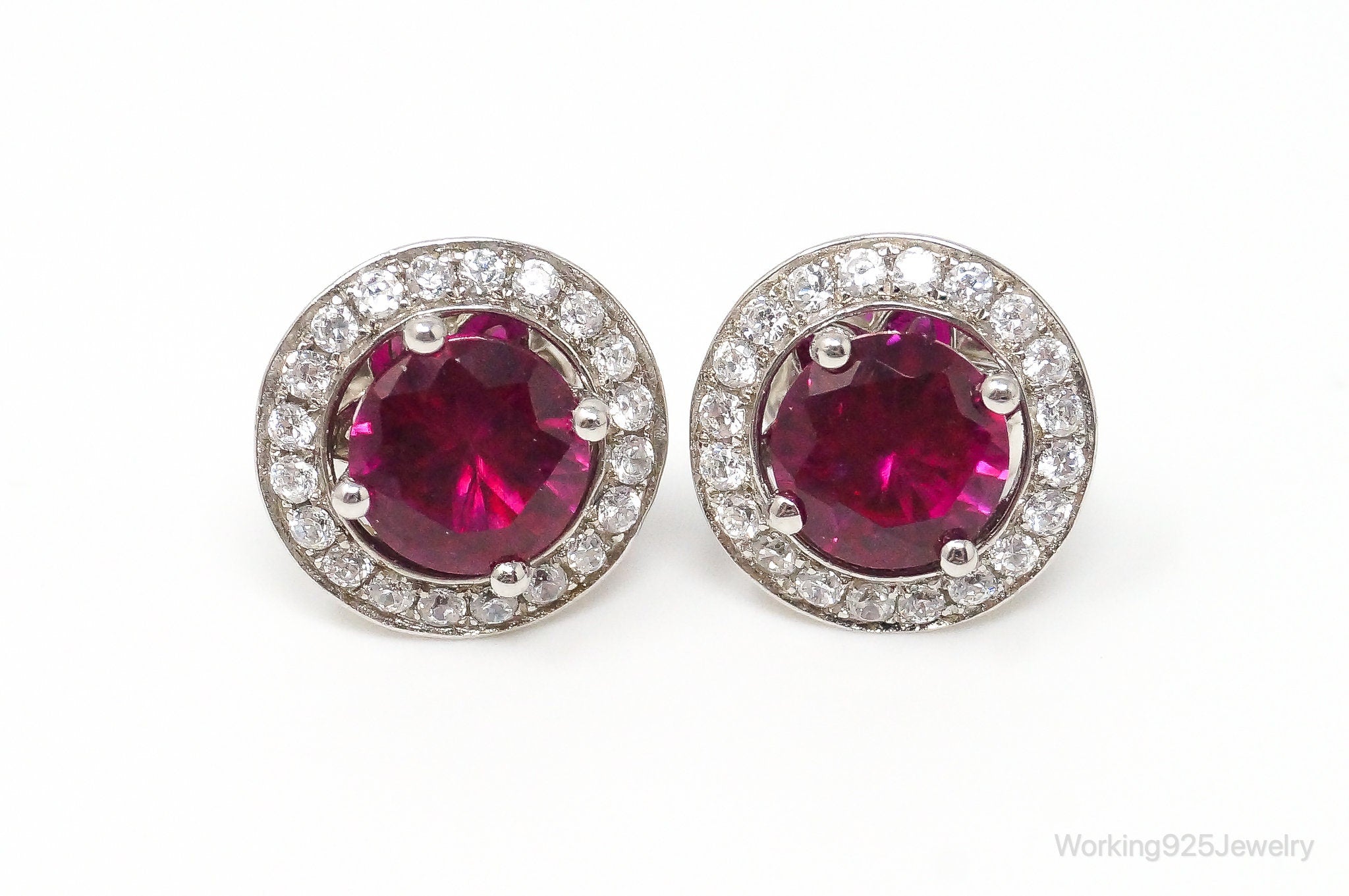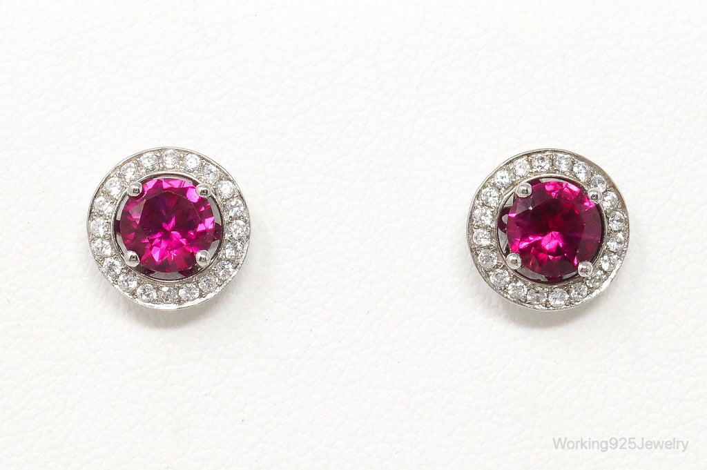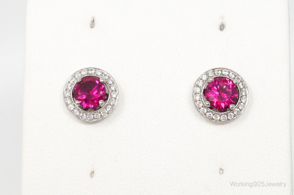 Large Pink Cubic Zirconia Sterling Silver Earrings