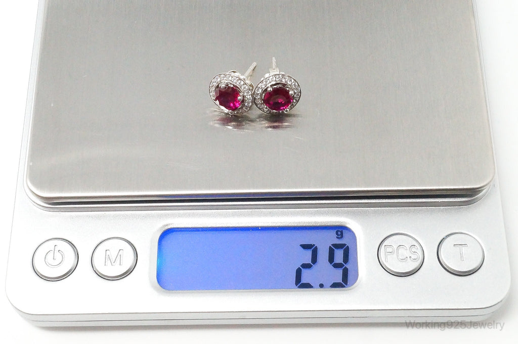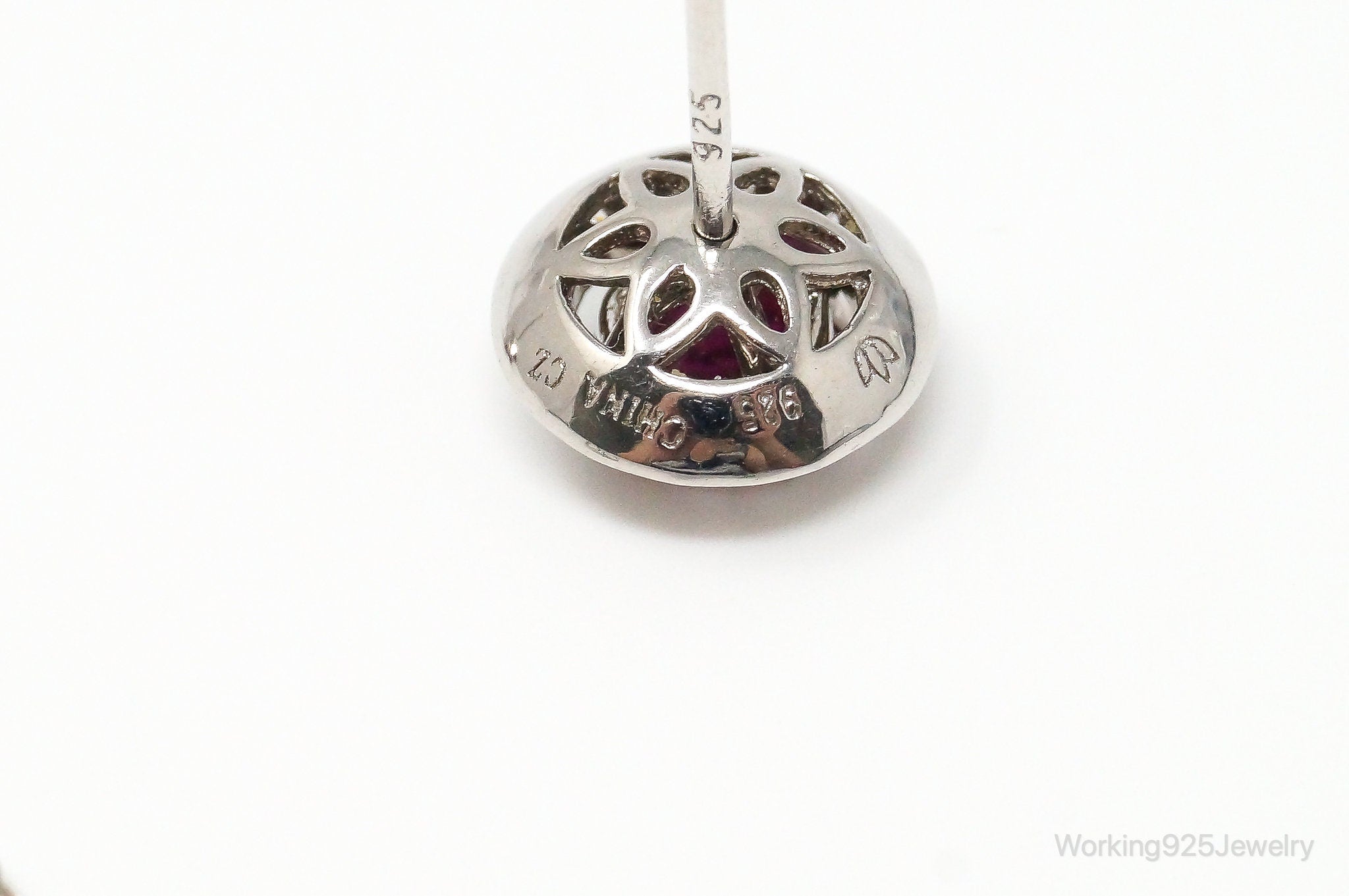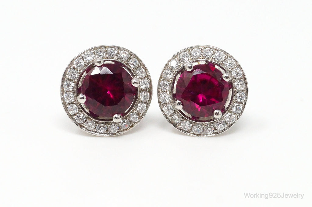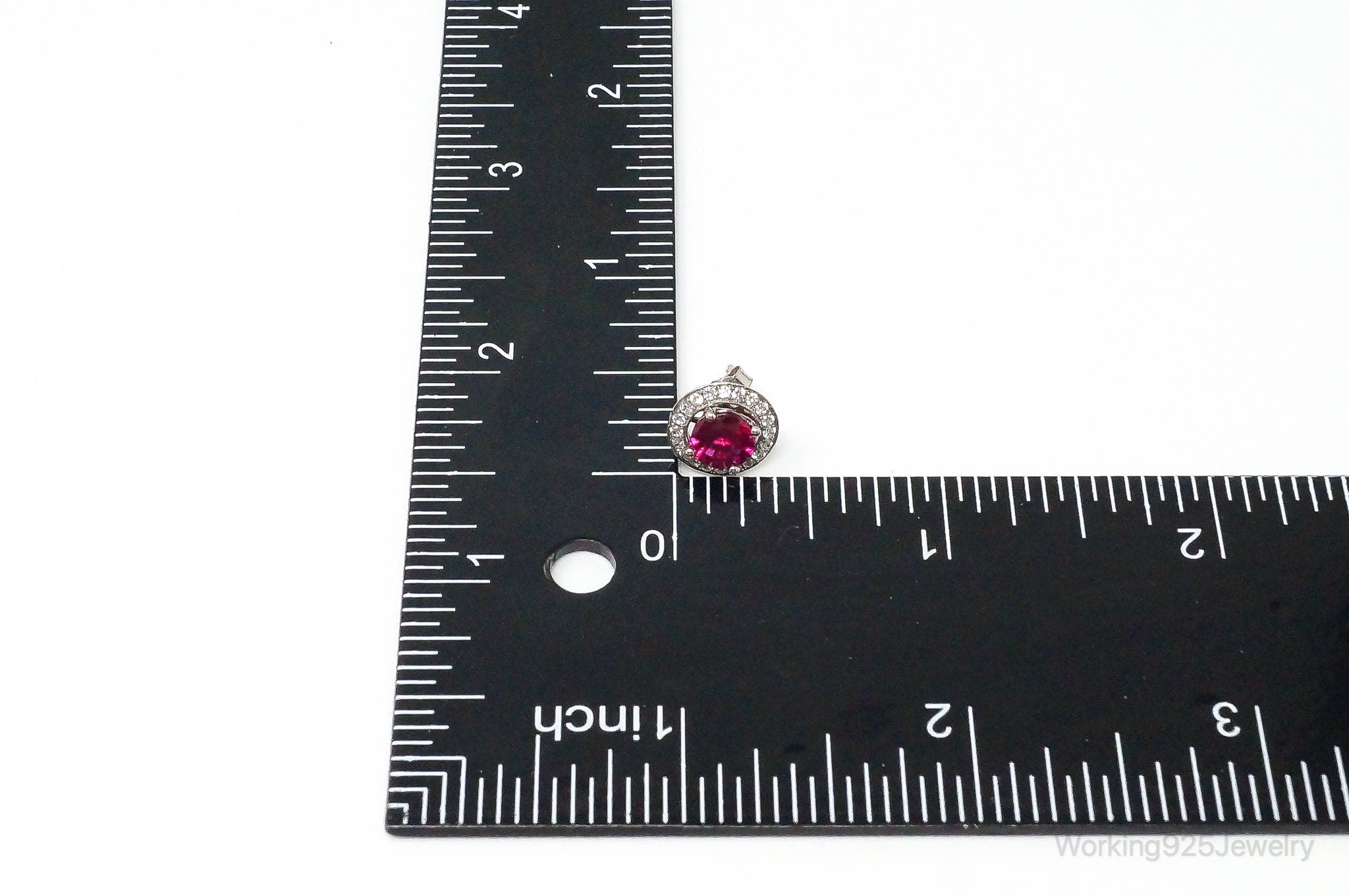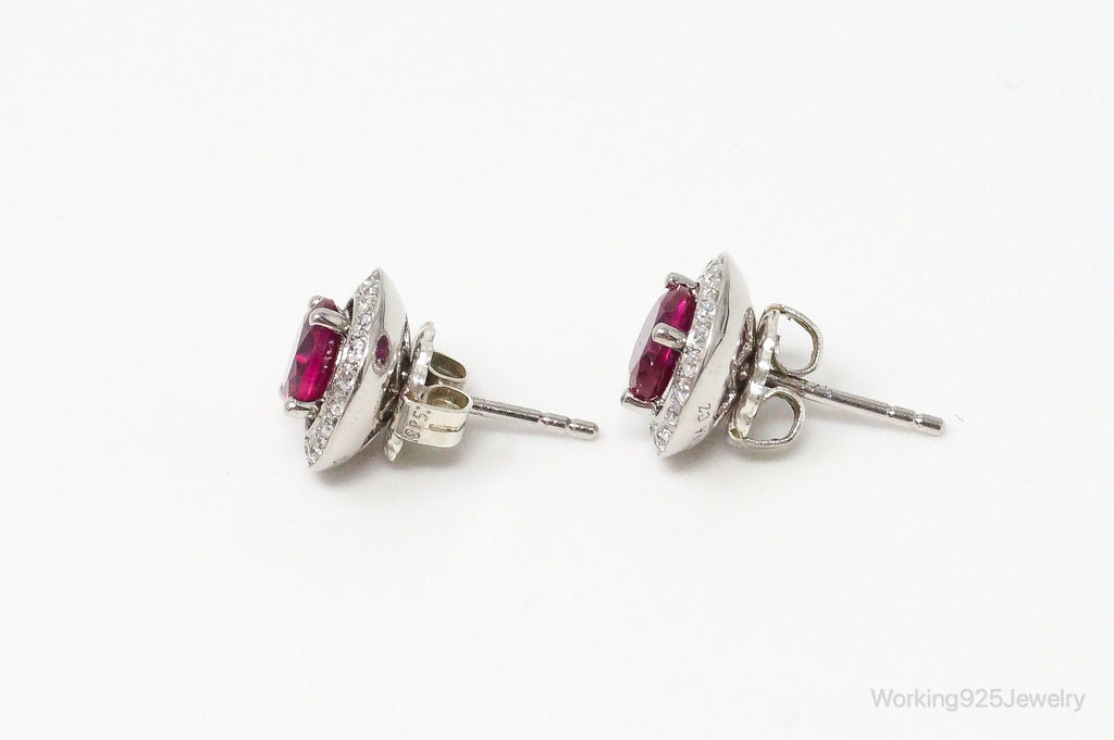 Large Pink Cubic Zirconia Sterling Silver Earrings