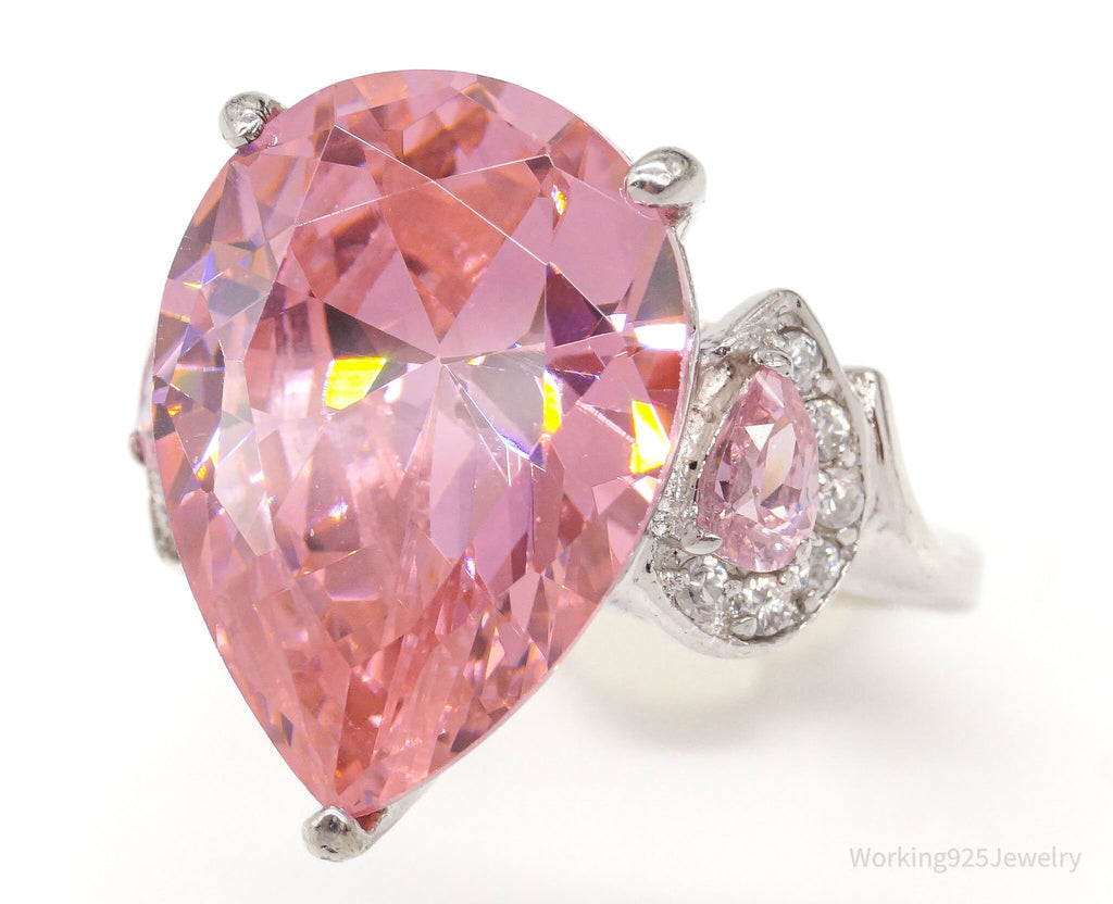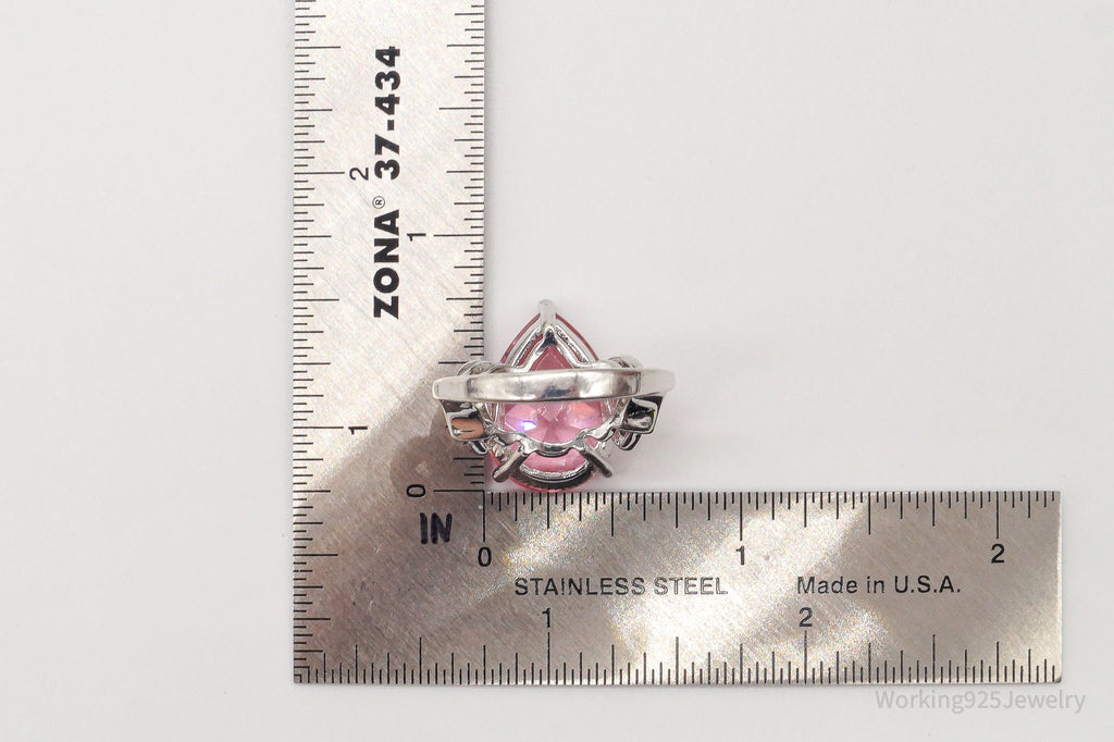 Large Pink & White Cubic Zirconia Sterling Silver Statement Ring - Size 7