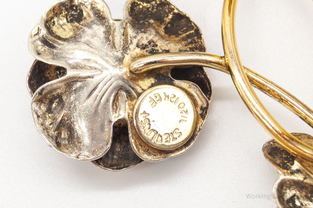 Large Vintage 1930s Orange Glass 12K GF Sterling Silver Flowers Brooch Pin
