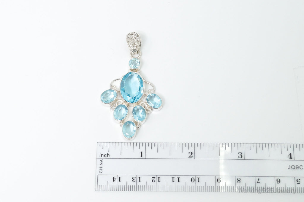 Large Vintage Blue Topaz Sterling Silver Necklace Pendant