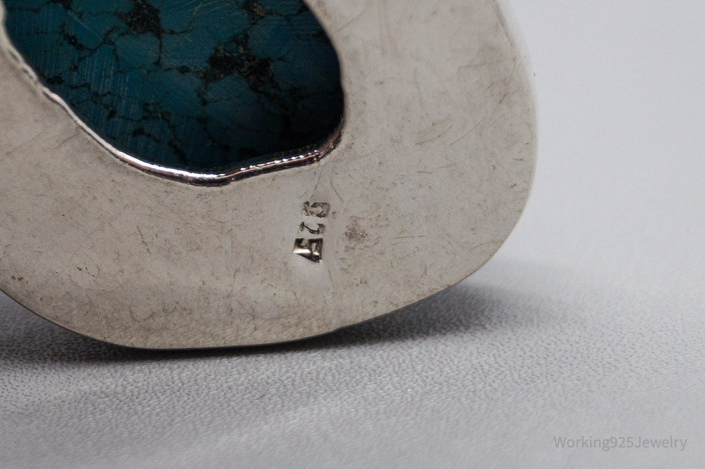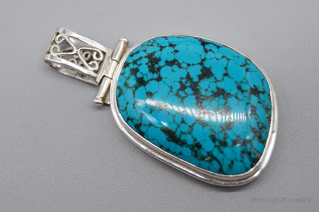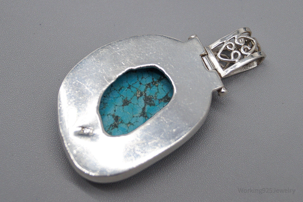 Large Vintage Blue Turquoise Sterling Silver Pendant