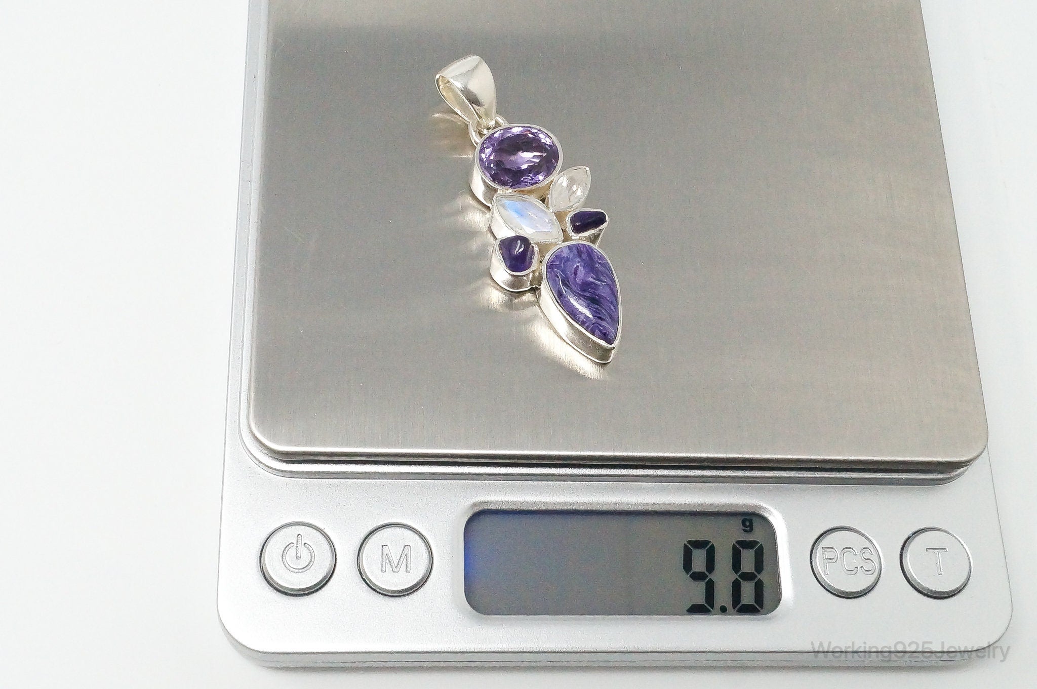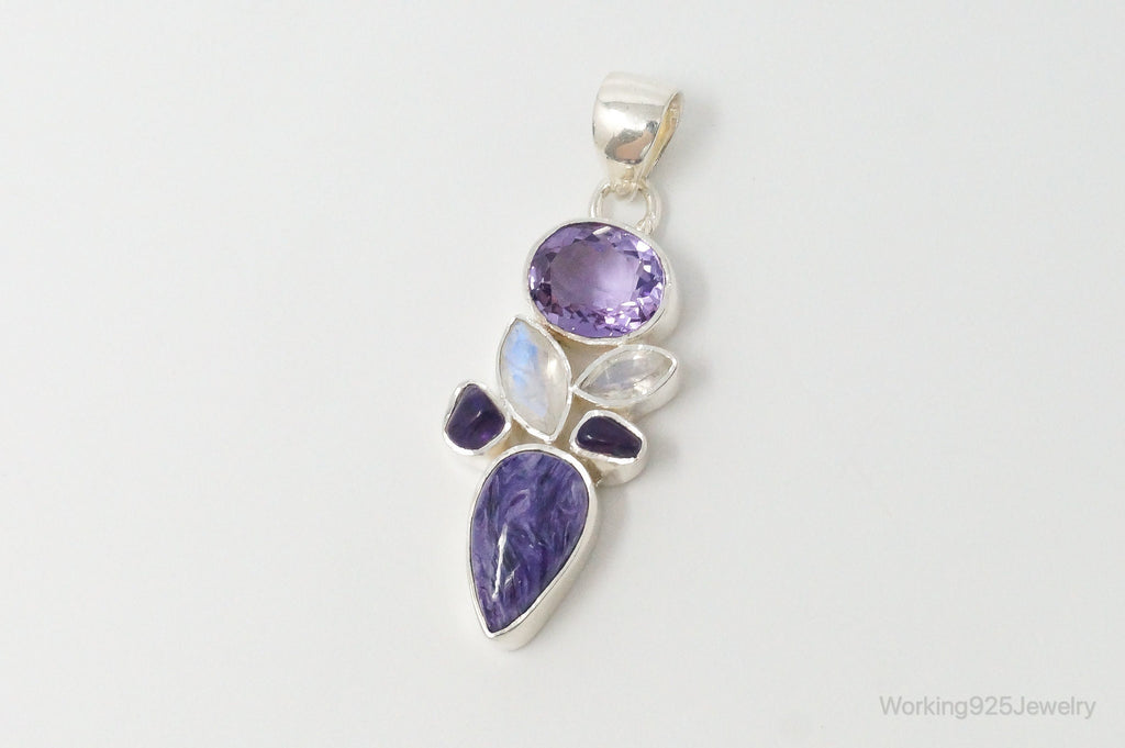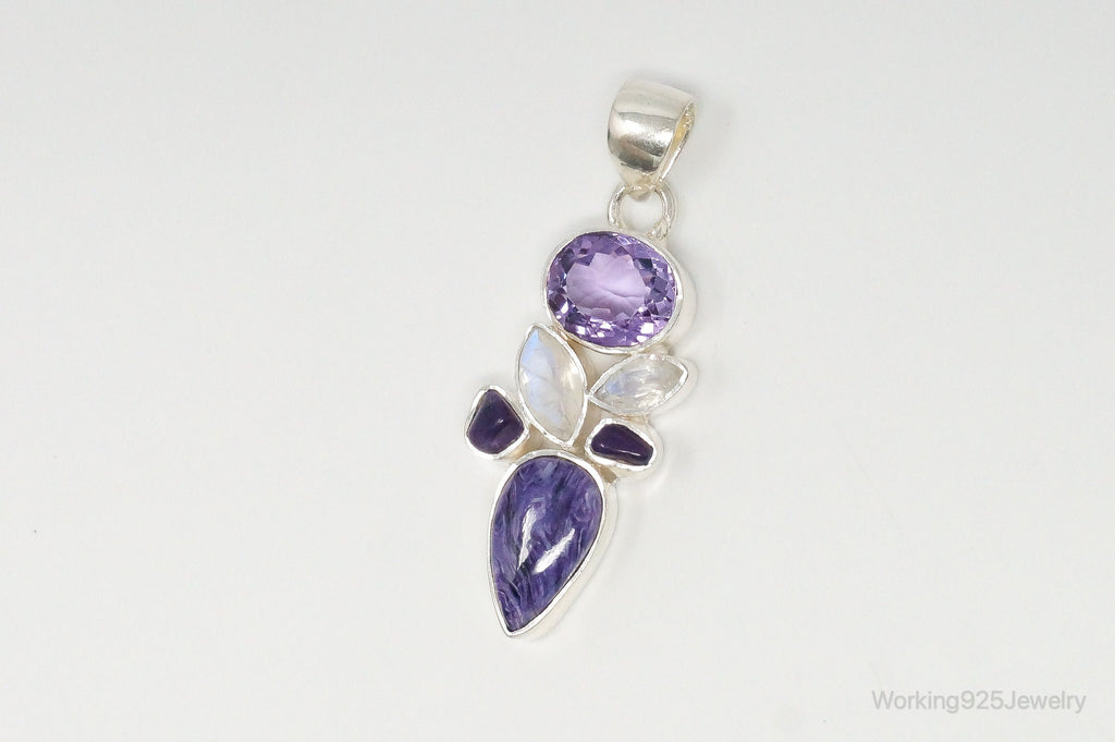 Large Vintage Charoite Amethyst Moonstone Sterling Silver Necklace Pendant