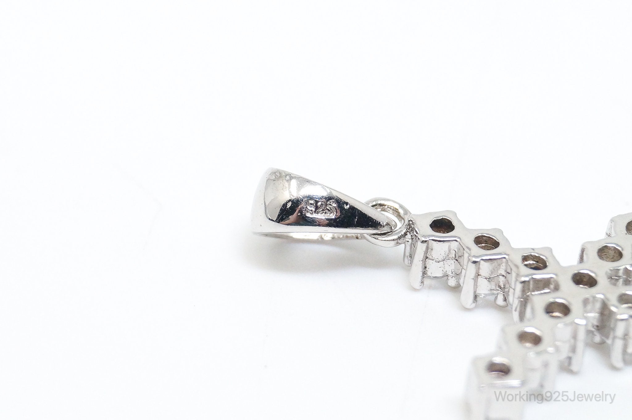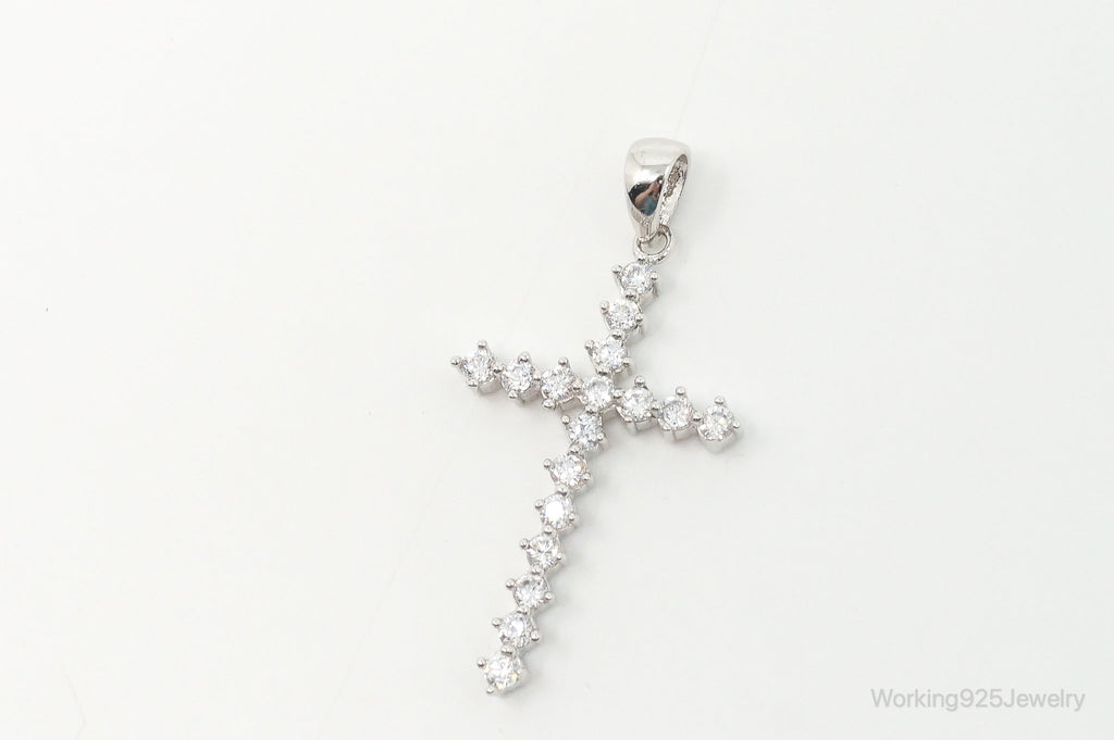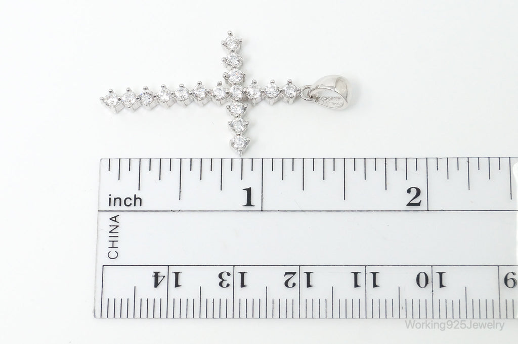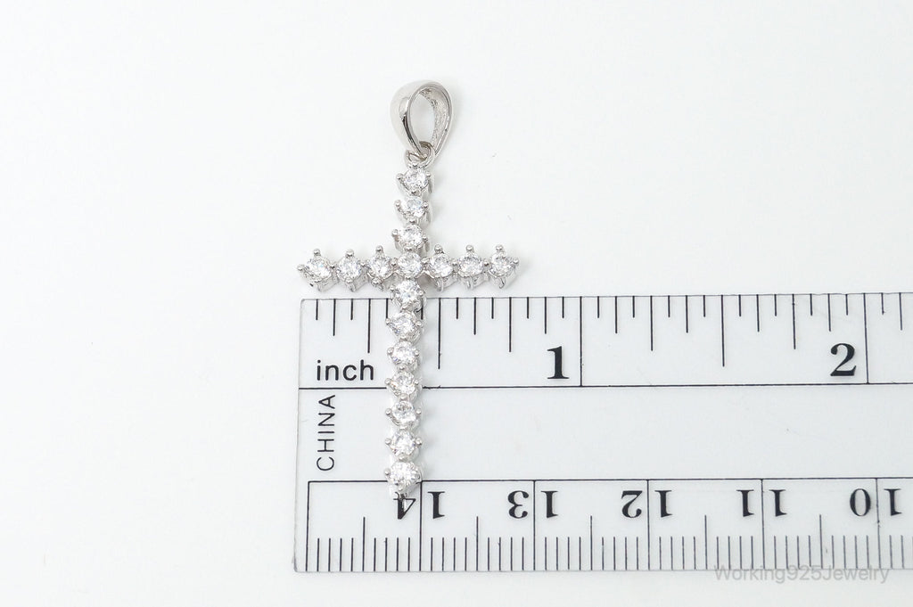 Large Vintage Cubic Zirconia Cross Sterling Silver Necklace Pendant