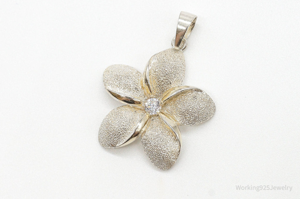 Large Vintage Cubic Zirconia Flower Sterling Silver Pendant
