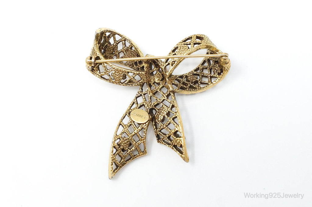 Large Vintage Designer Jeanne Gold Tone Rhinestone Box Brooch Pin