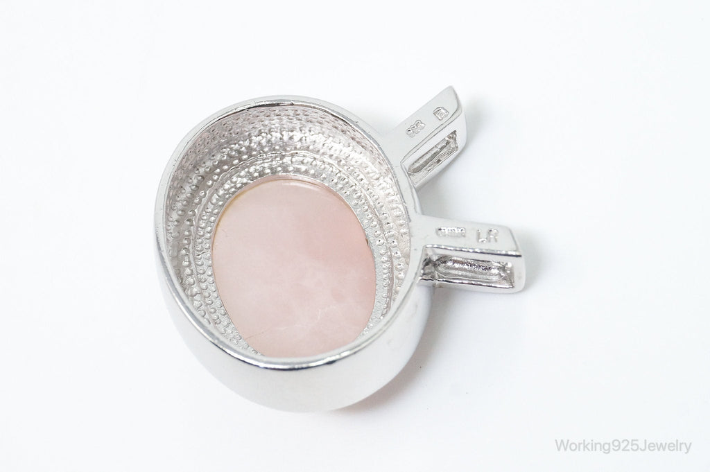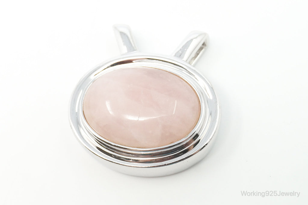 Large Vintage Designer Rose Quartz Sterling Silver Necklace Pendant