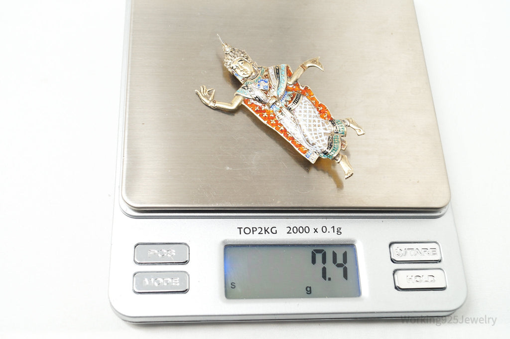 Large Vintage Designer SIAM NIELLO Dancer Enamel Sterling Silver Brooch Pin
