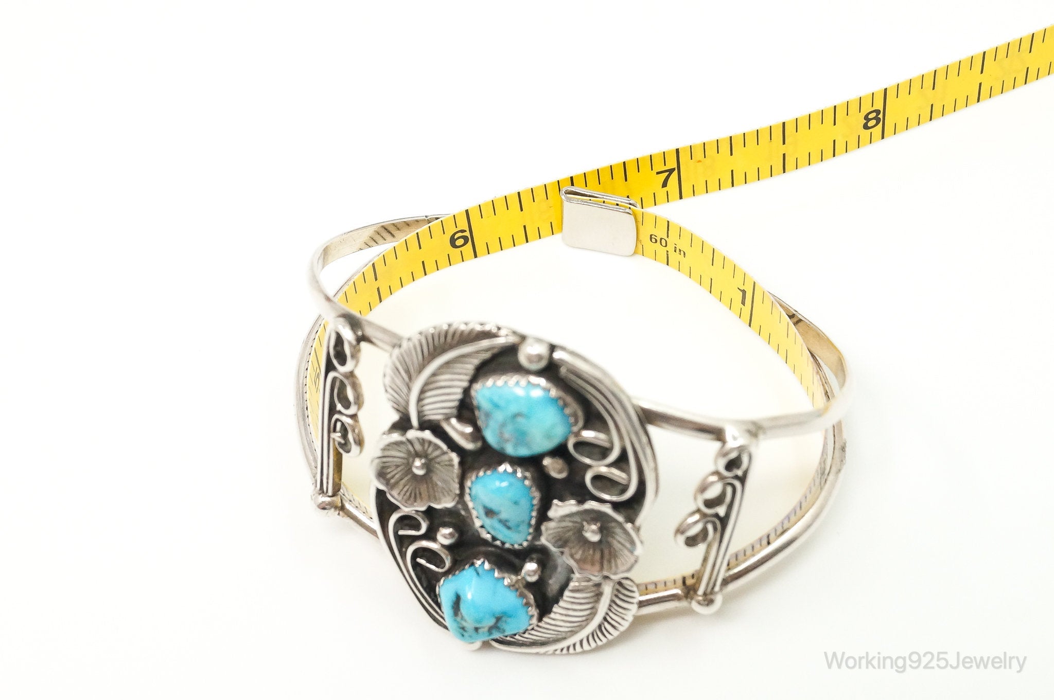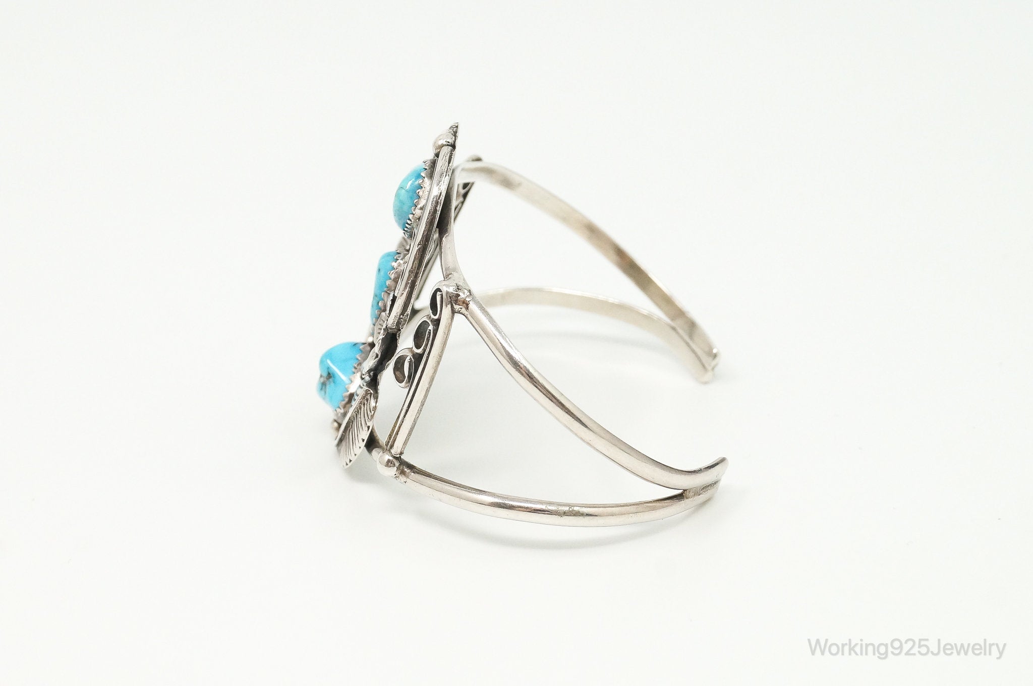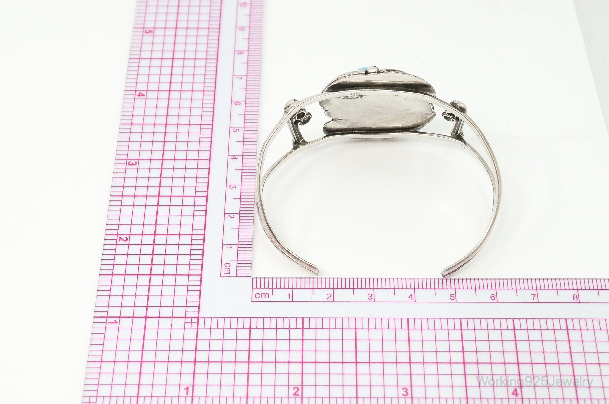 Large Vintage Handmade Native American Turquoise Sterling Silver Cuff Bracelet