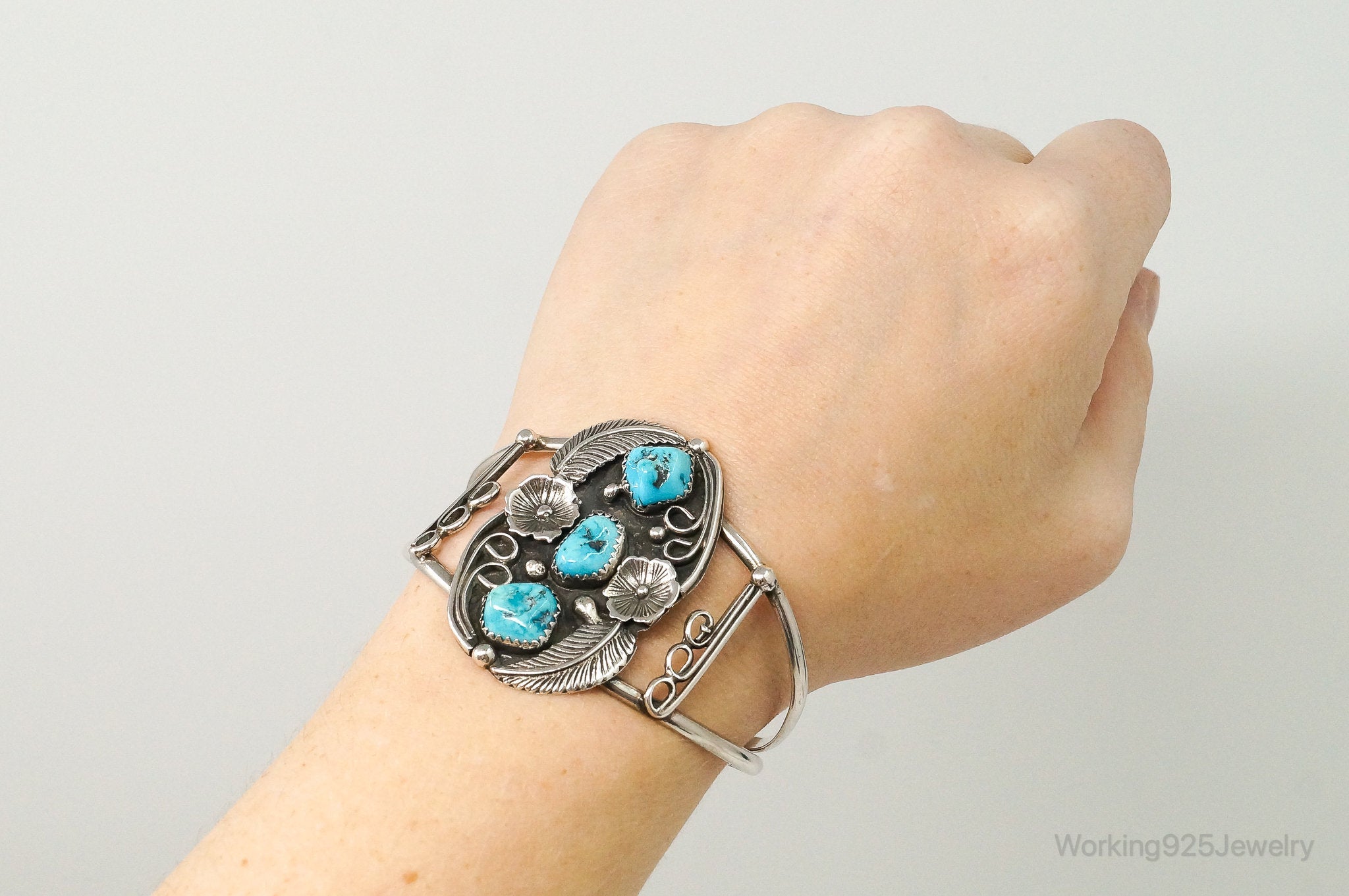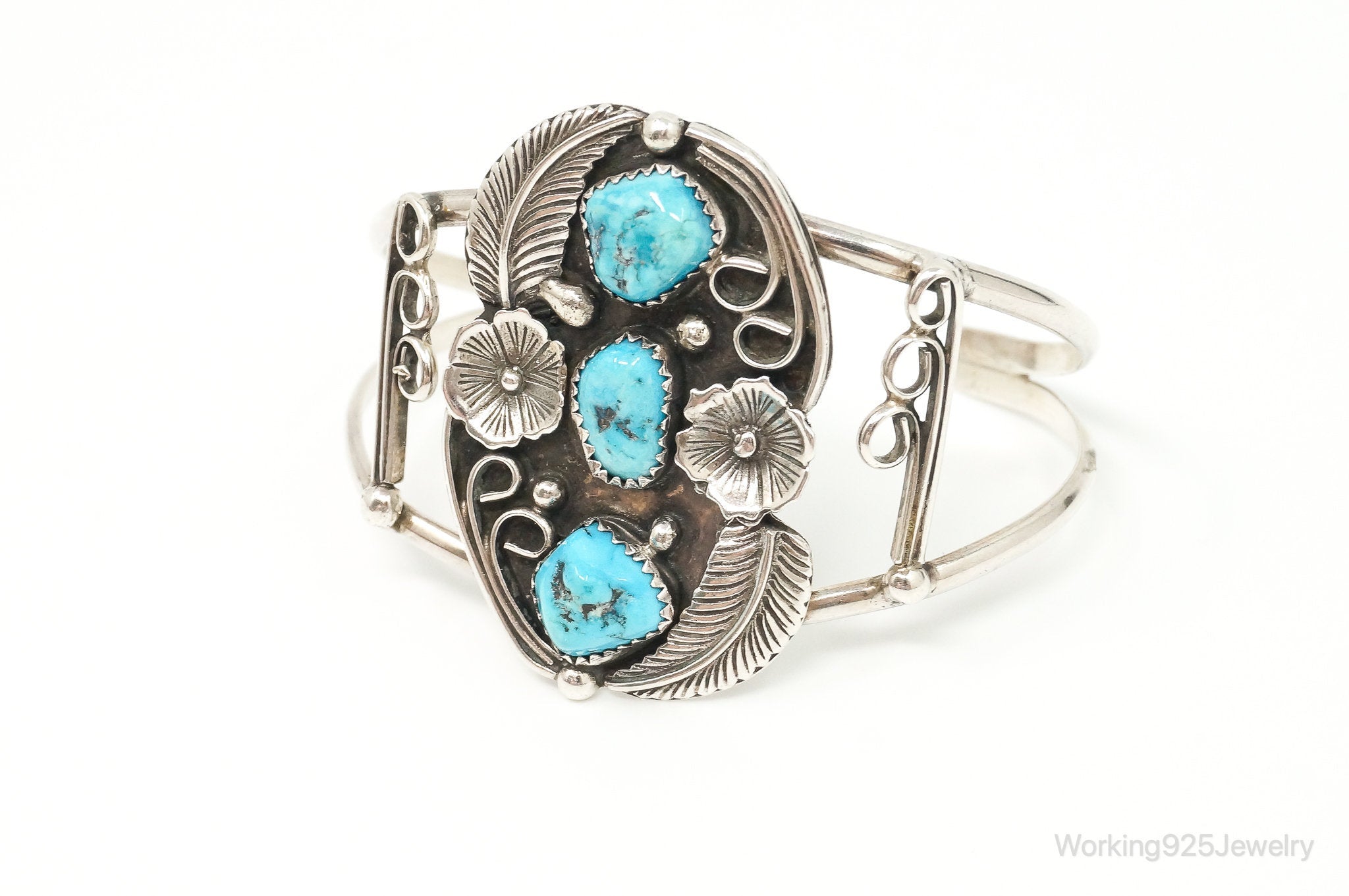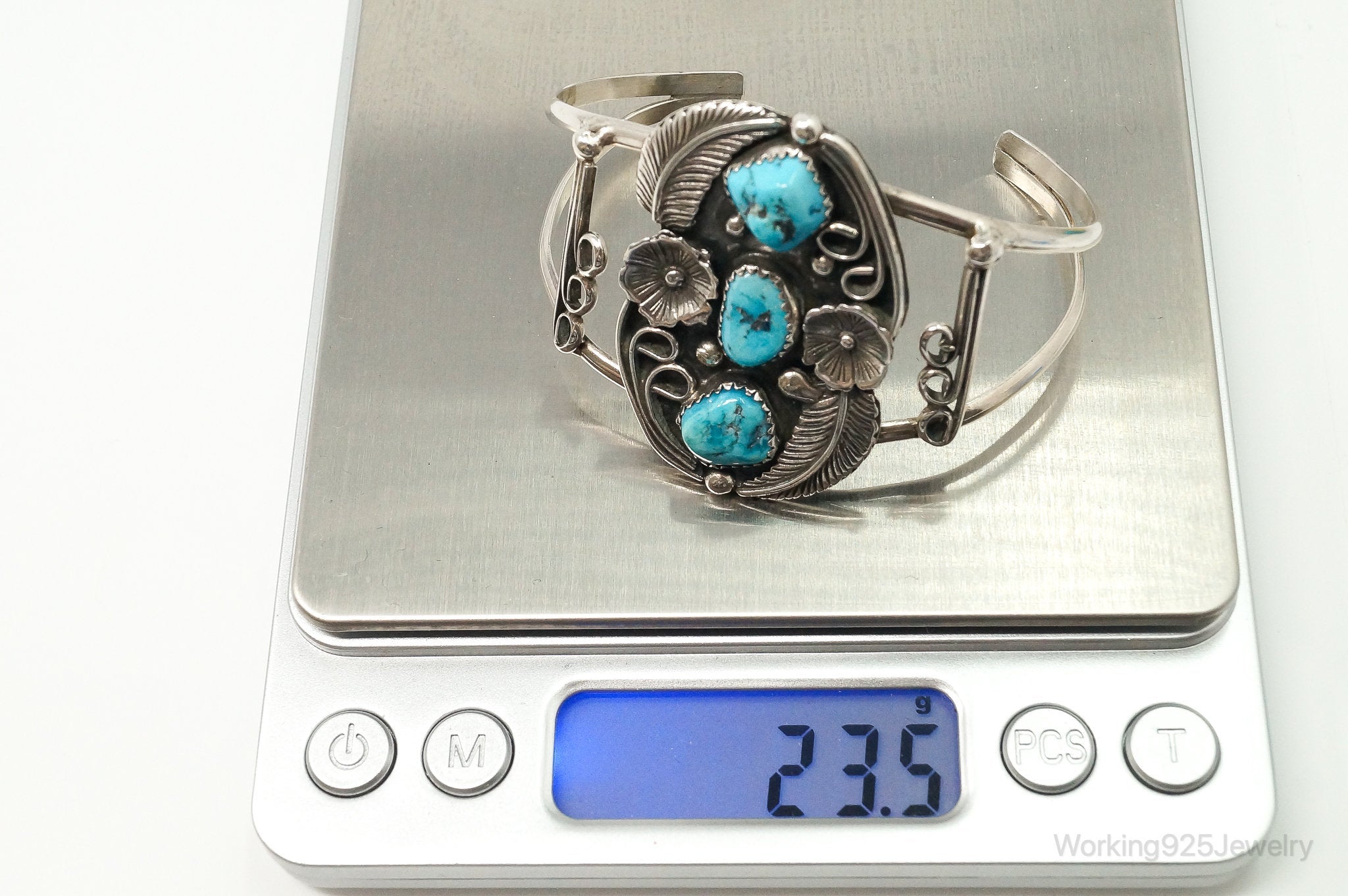Large Vintage Handmade Native American Turquoise Sterling Silver Cuff Bracelet