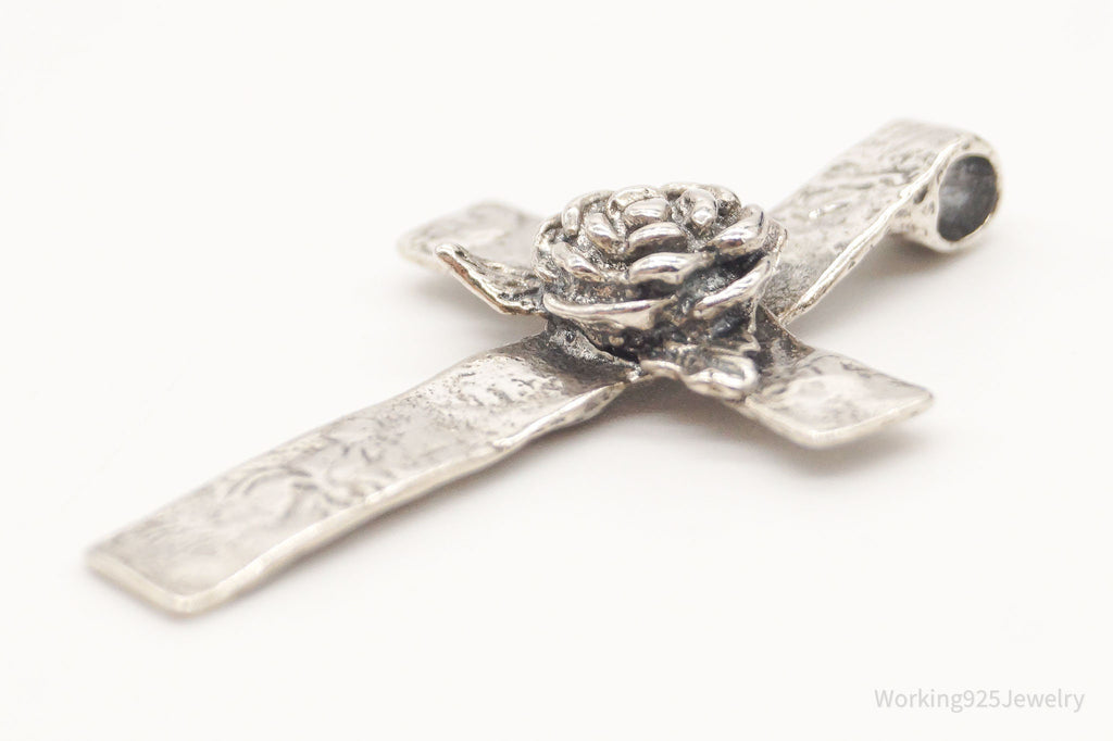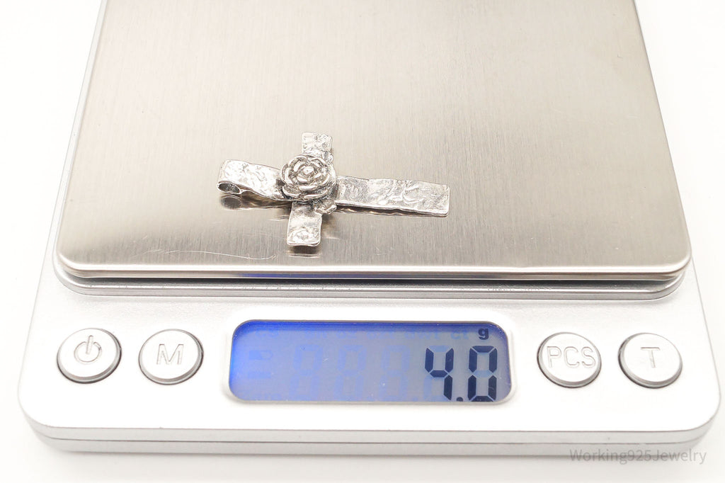 Large Vintage Israel Designer RL Ross Cross Sterling Silver Pendant