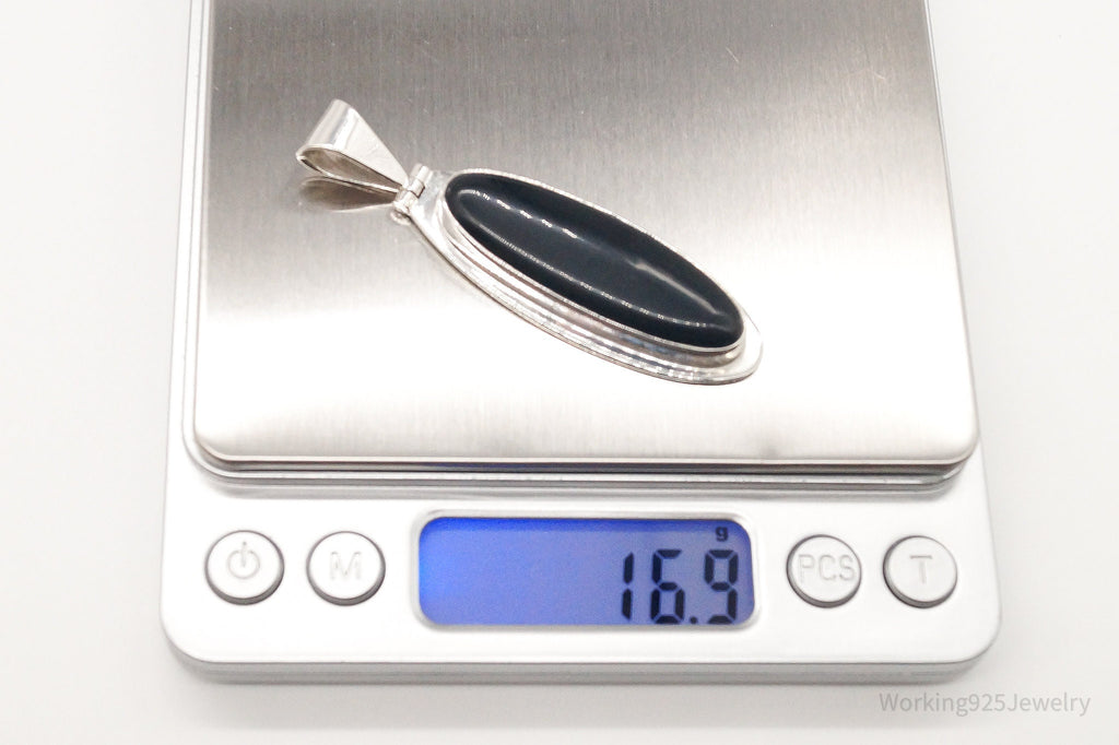 Large Vintage Mexico CII Black Onyx Sterling Silver Pendant