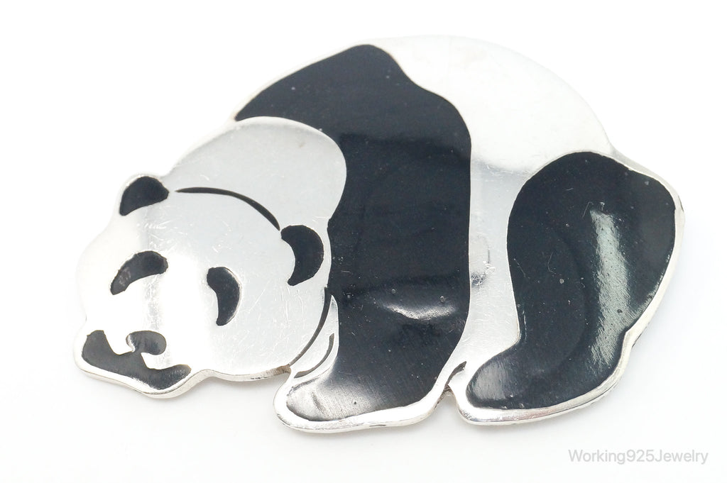 Large Vintage Mexico Enamel Panda Sterling Silver Brooch Pendant