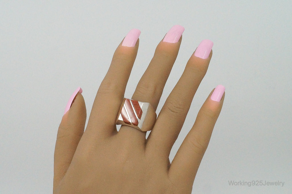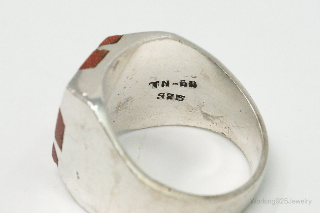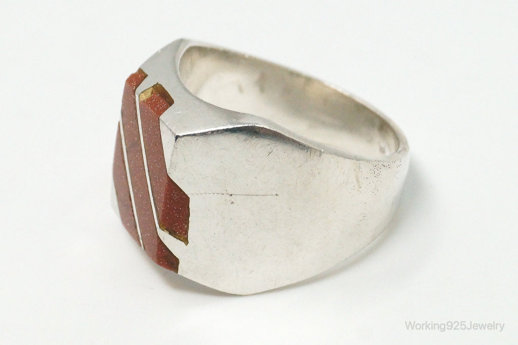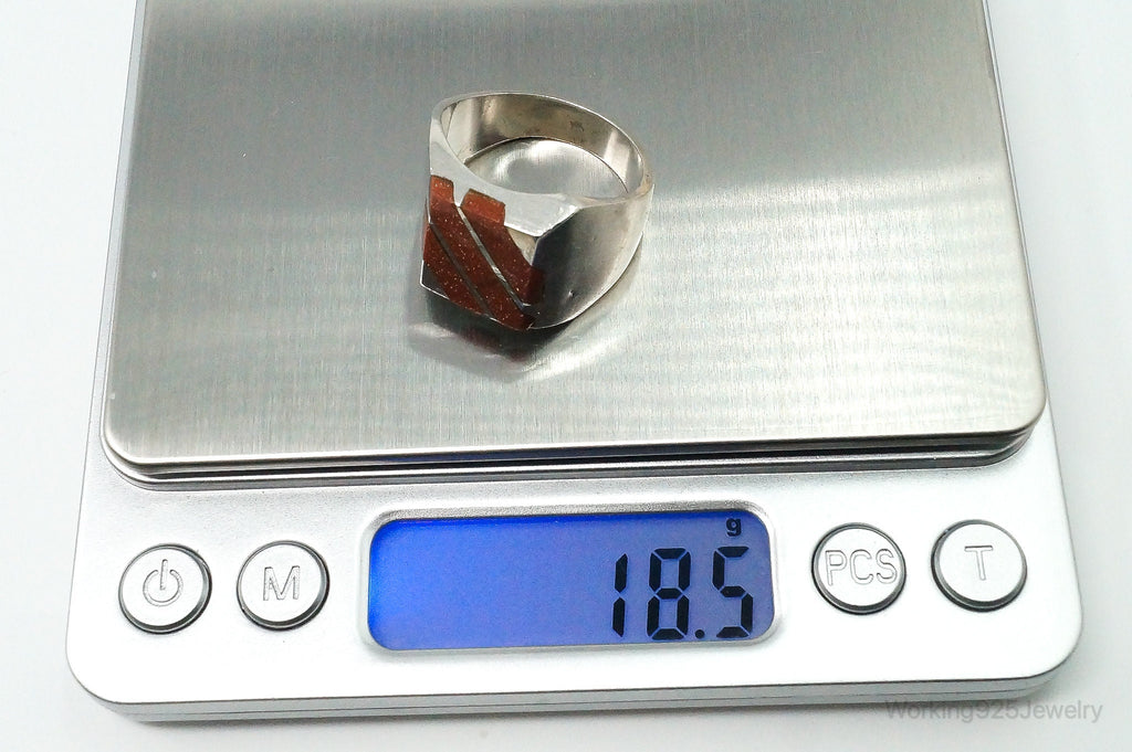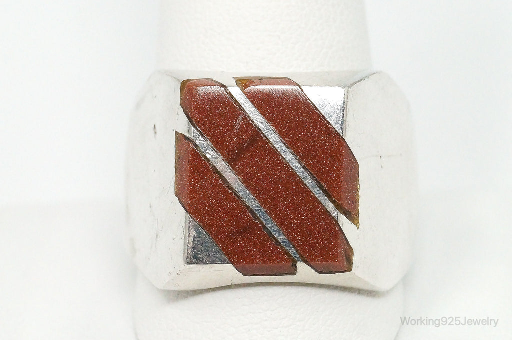 Large Vintage Mexico Goldstone Sterling Silver Ring - Size 11.75