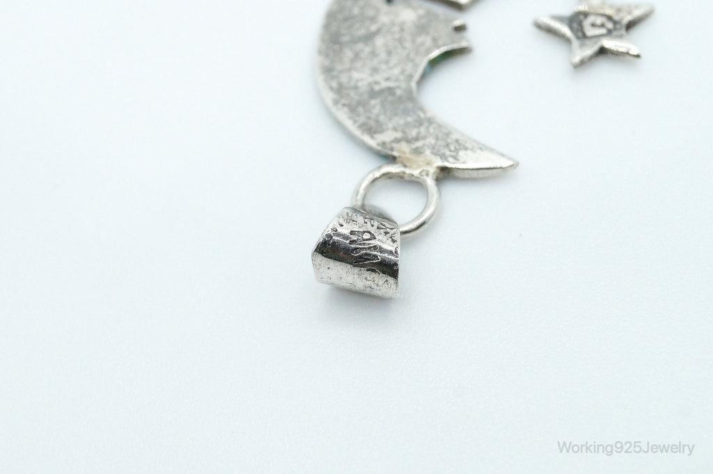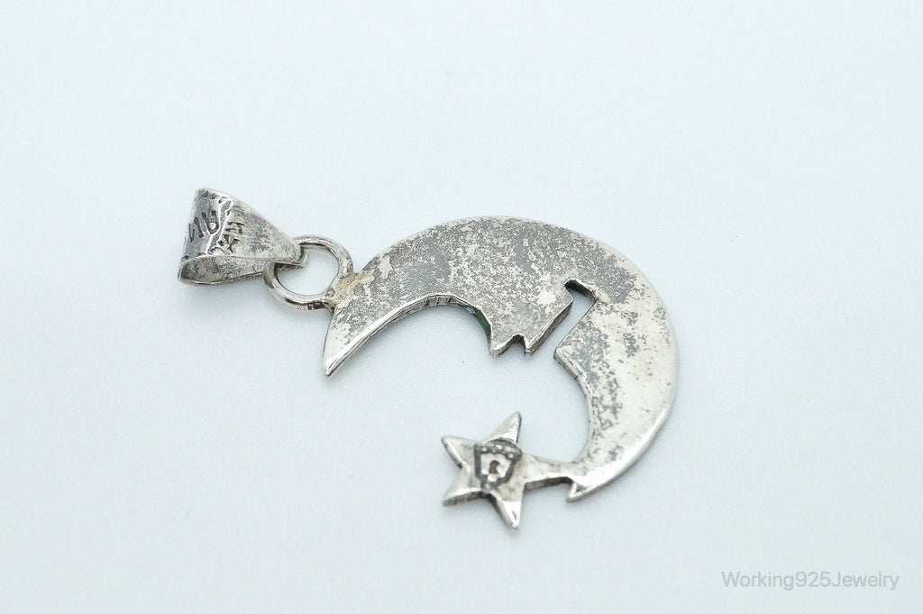 Large Vintage Mexico Turquoise Sterling Silver Moon Necklace Pendant