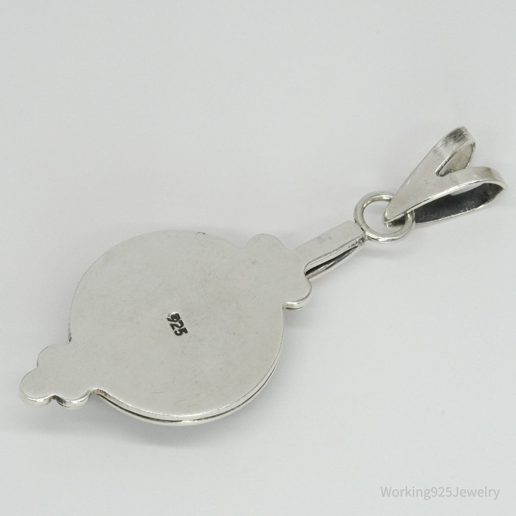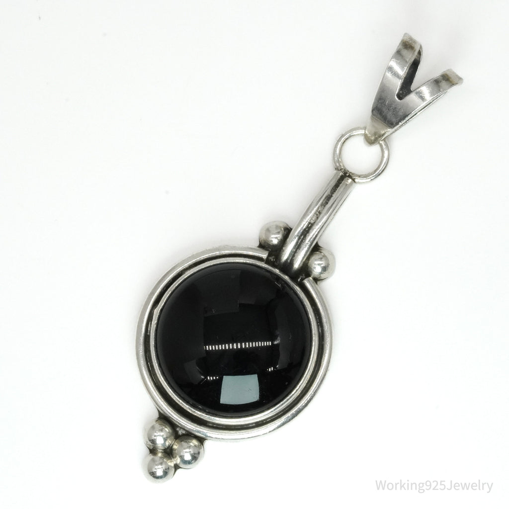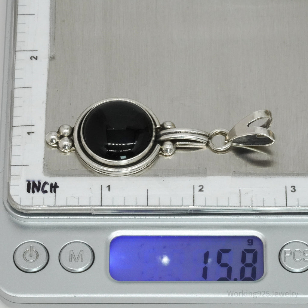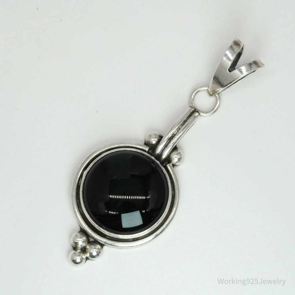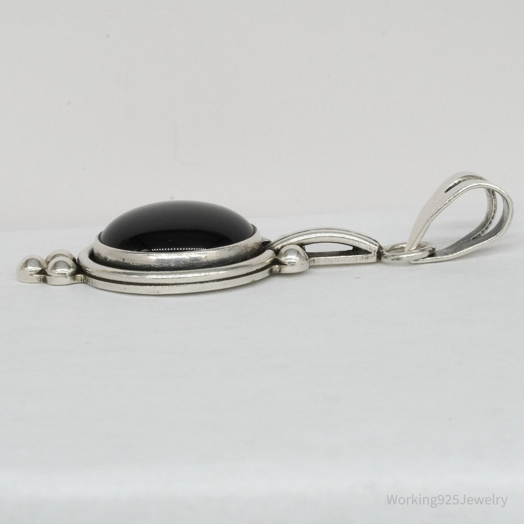 Large Vintage Modernist Black Onyx Sterling Silver Necklace Pendant