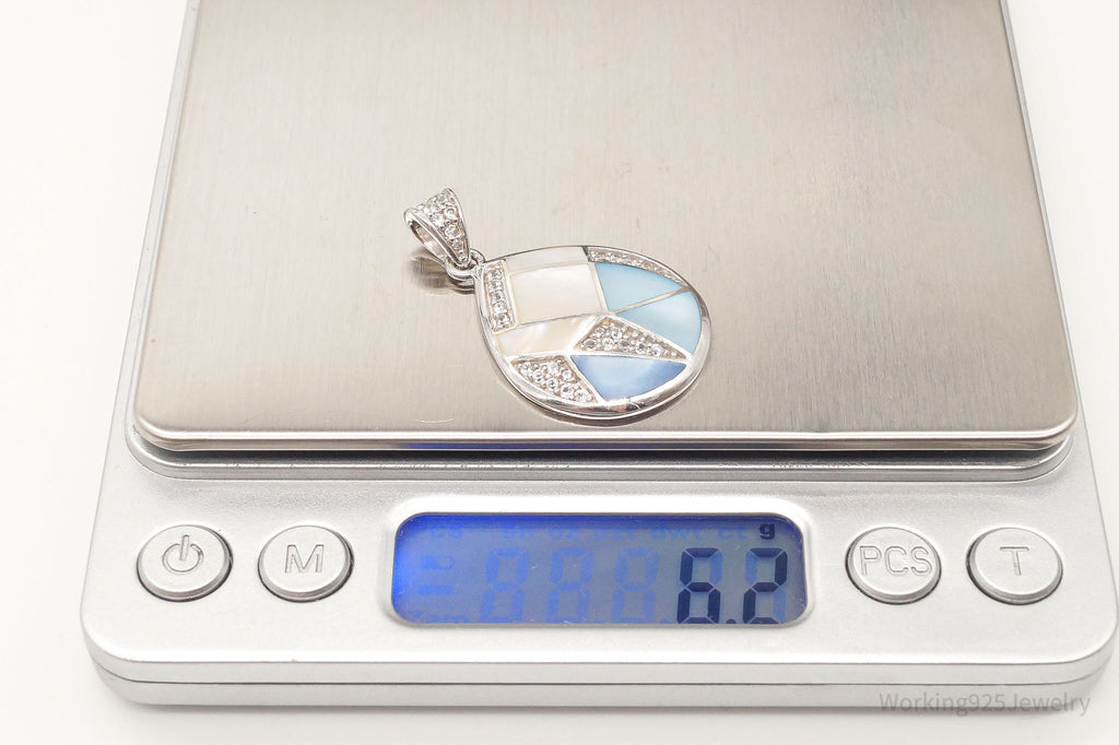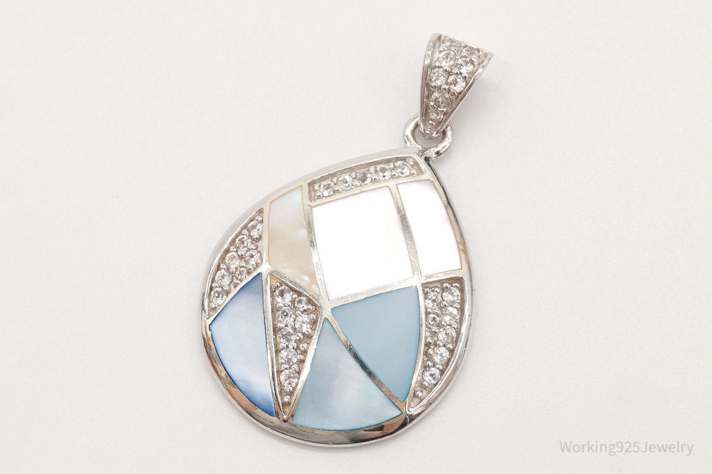 Large Vintage Mother Of Pearl Cubic Zirconia Sterling Silver Pendant
