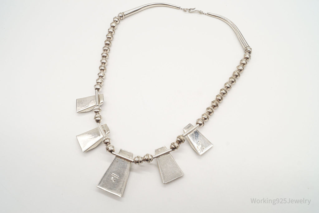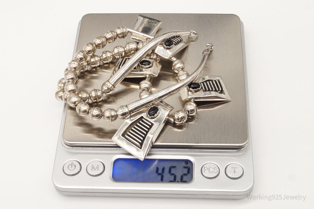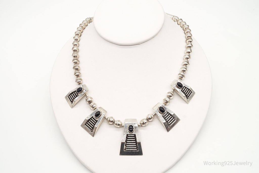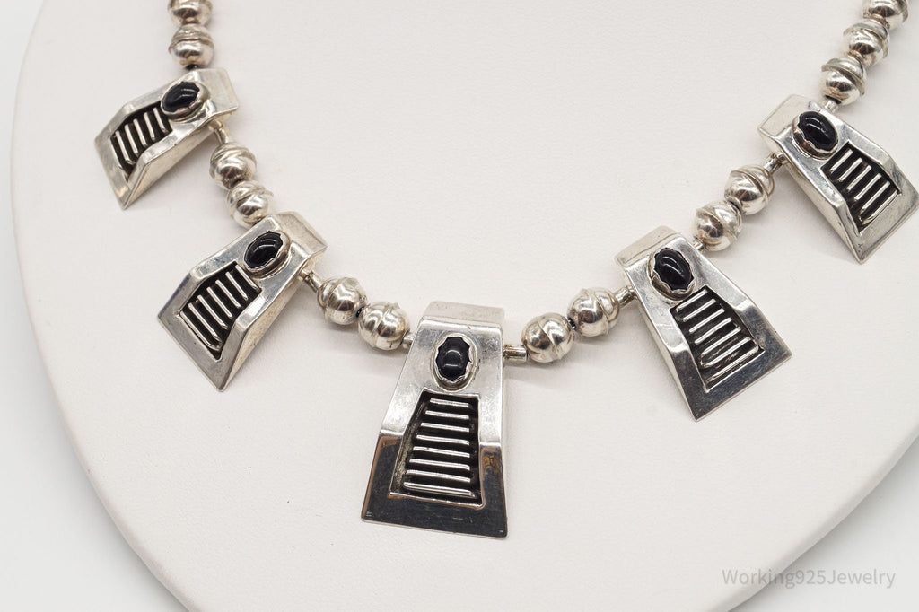 Large Vintage Native American Black Onyx Sterling Silver Necklace