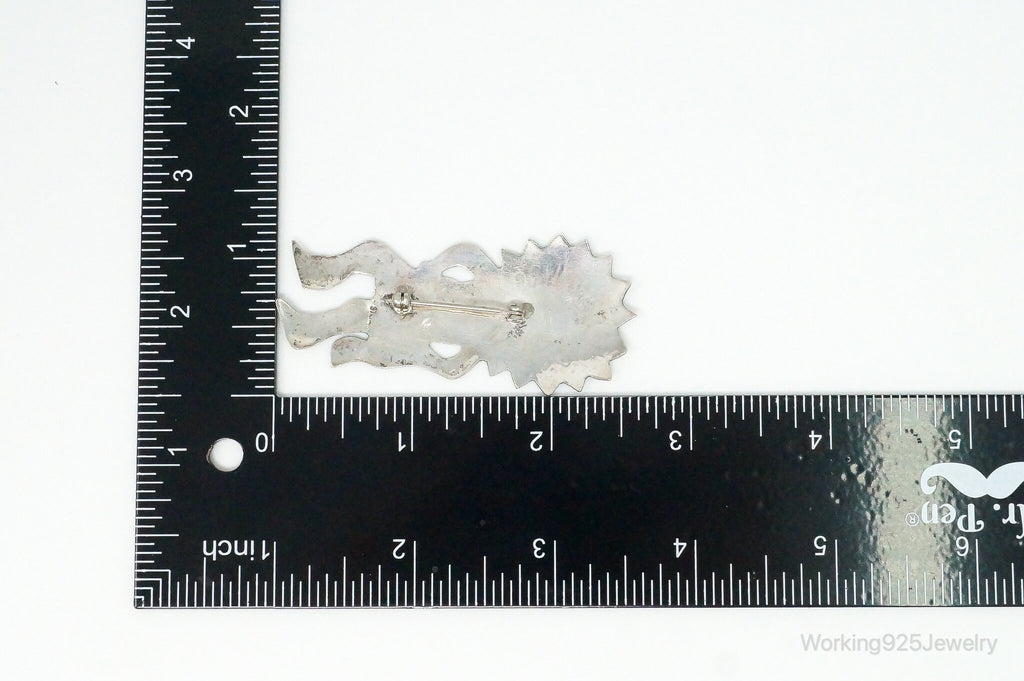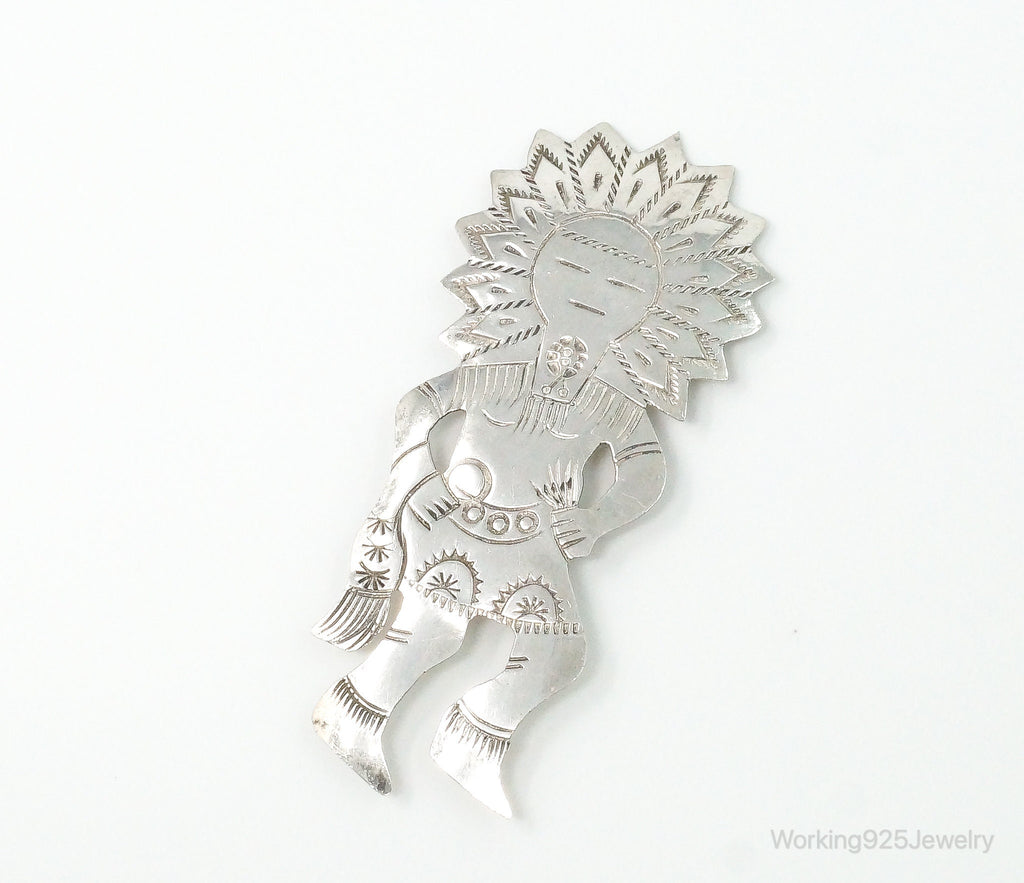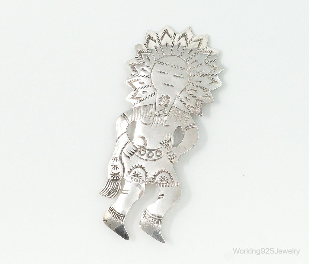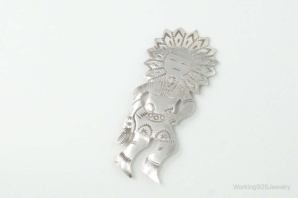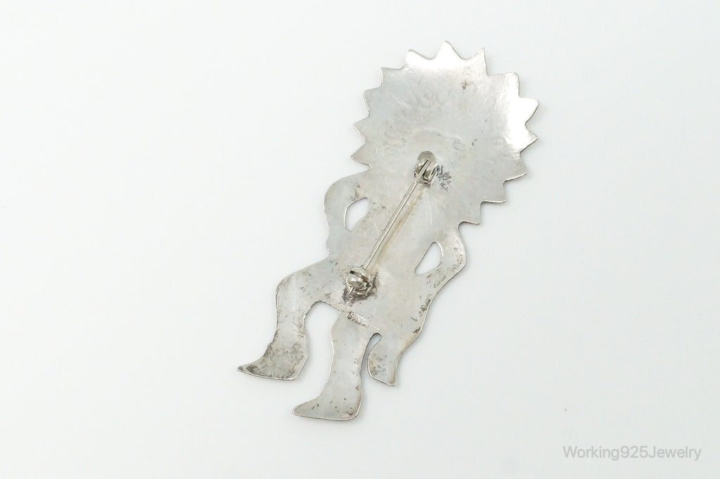 Large Vintage Native American Dancing Sun Kachina Sterling Silver Pin