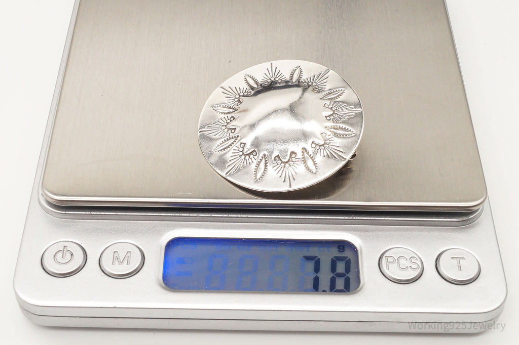 Large Vintage Native American Sterling Silver Brooch Pin