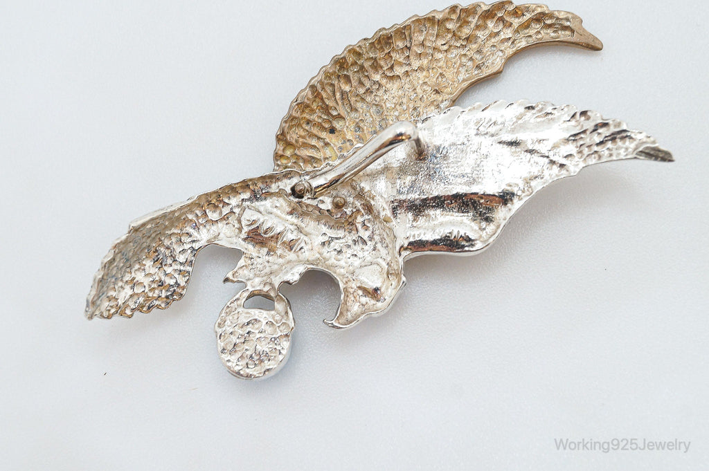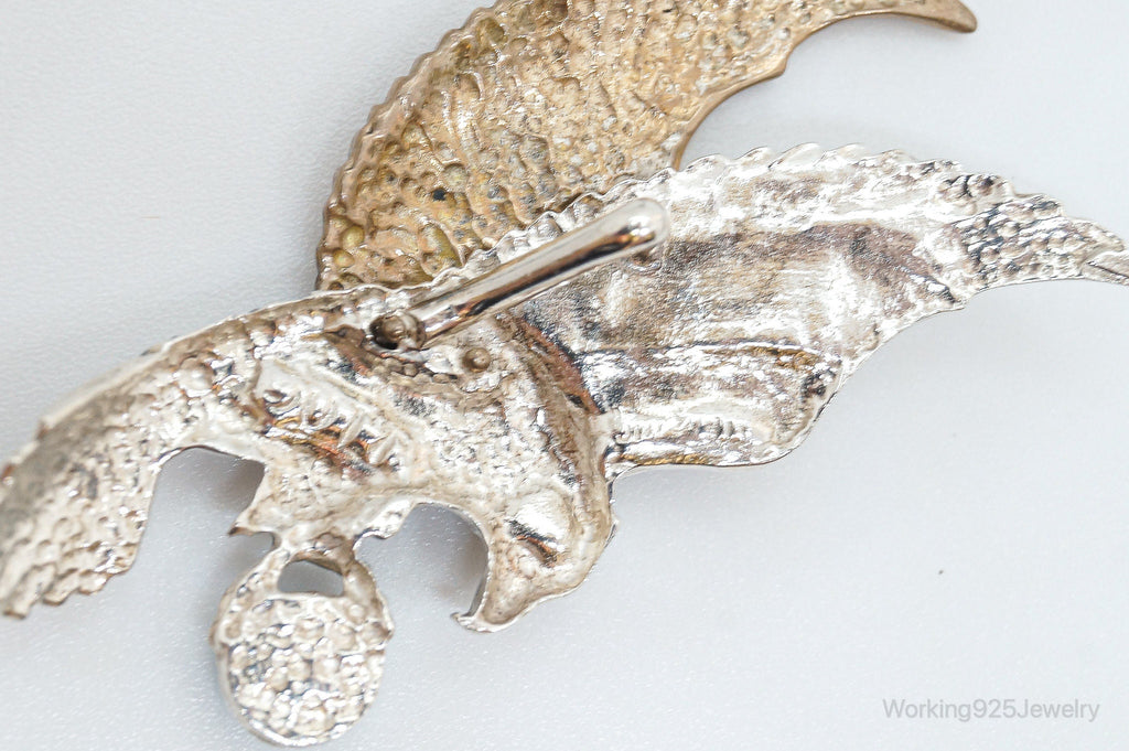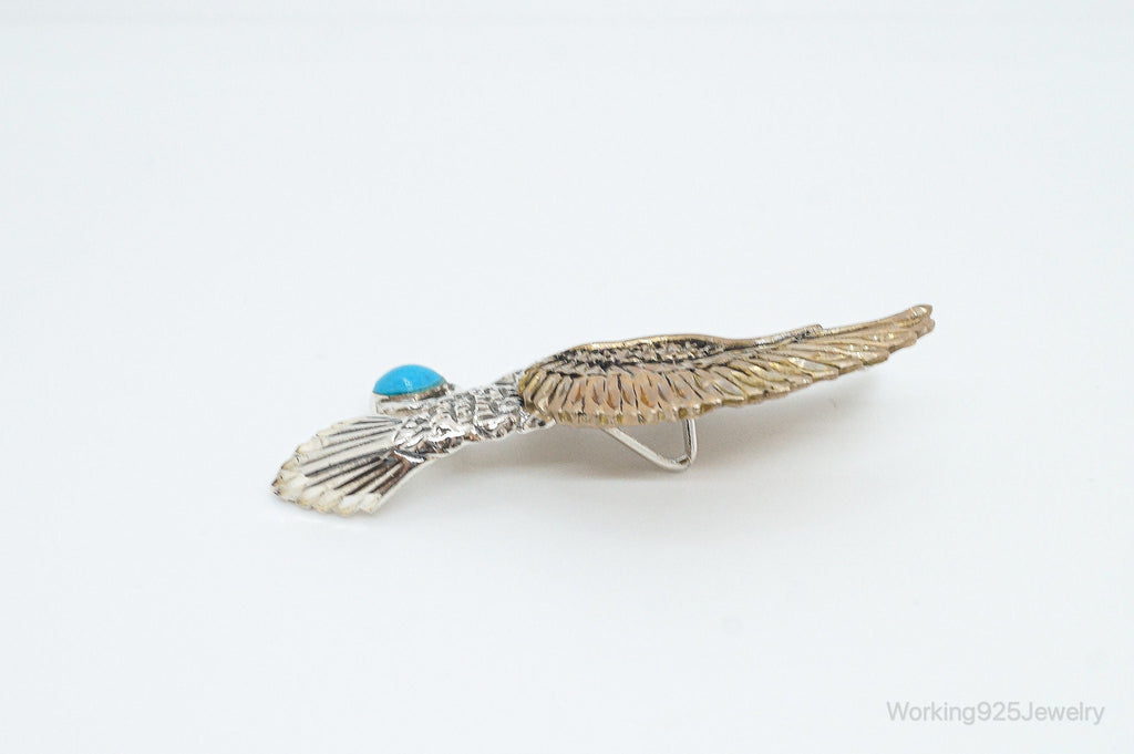 Large Vintage Native American Turquoise Eagle Bras Sterling Silver Pendant