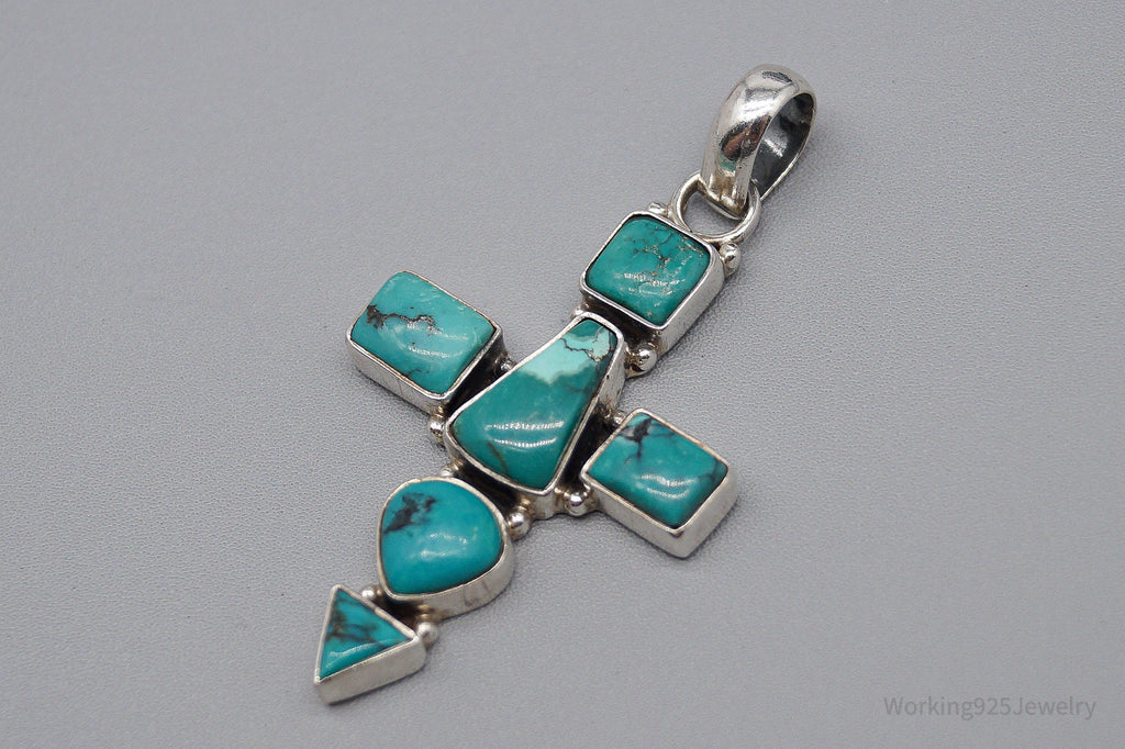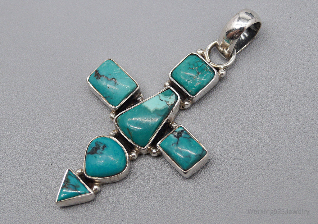 Large Vintage Native Turquoise Sterling Silver Cross Pendant