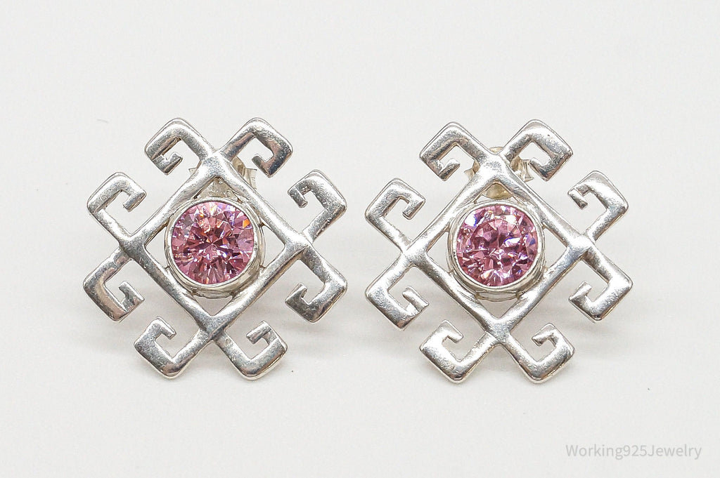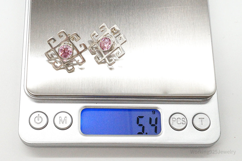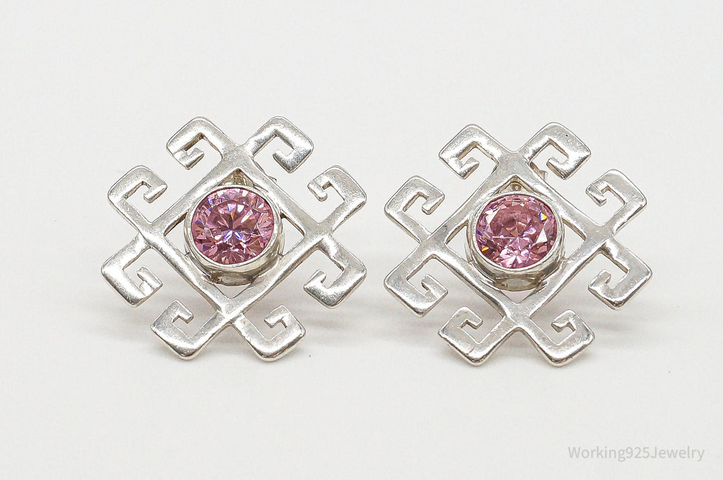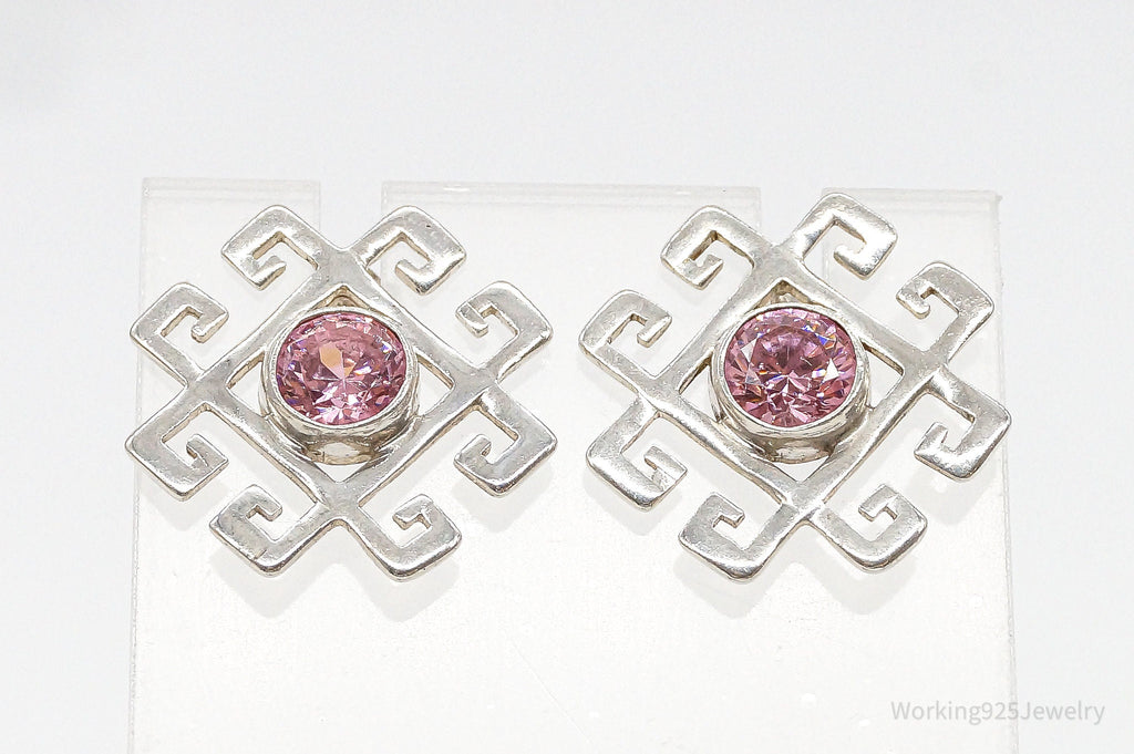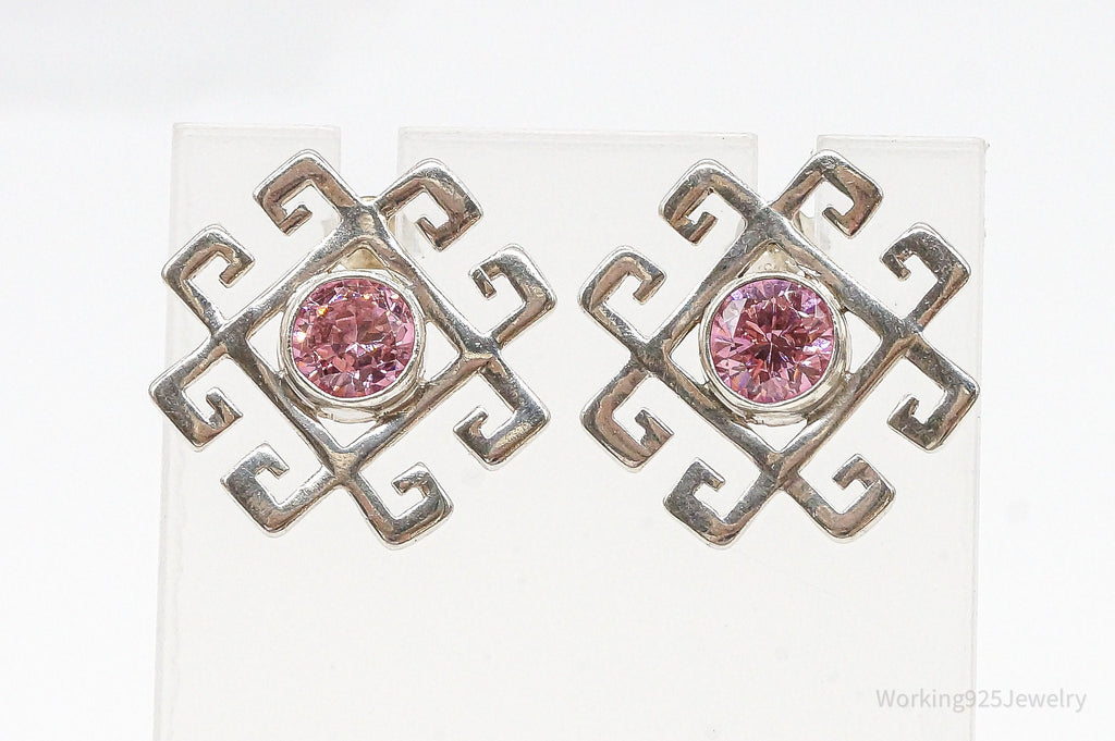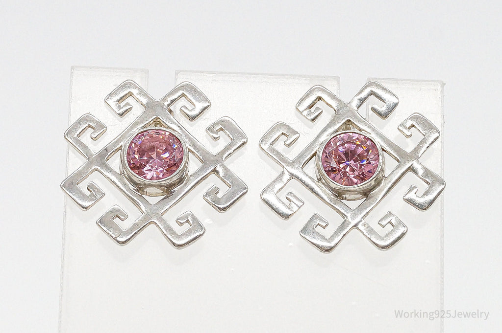 Large Vintage Pink Cubic Zirconia Sterling Silver Earrings