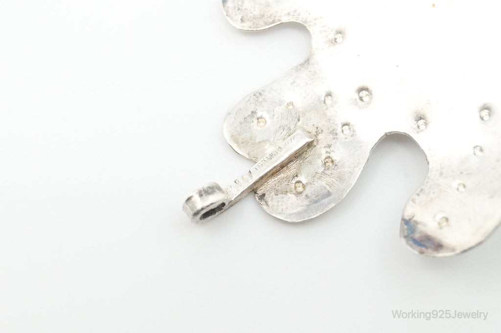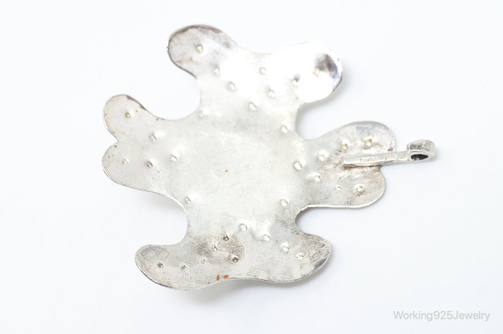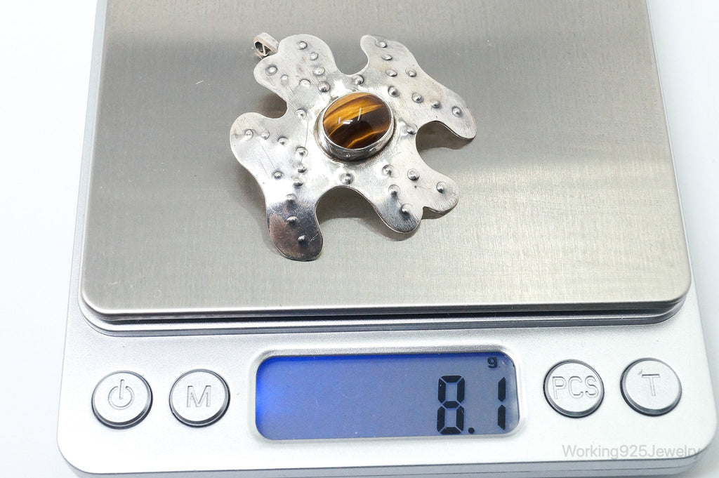 Large Vintage Tigers Eye Modernist Style Sterling Silver Pendant