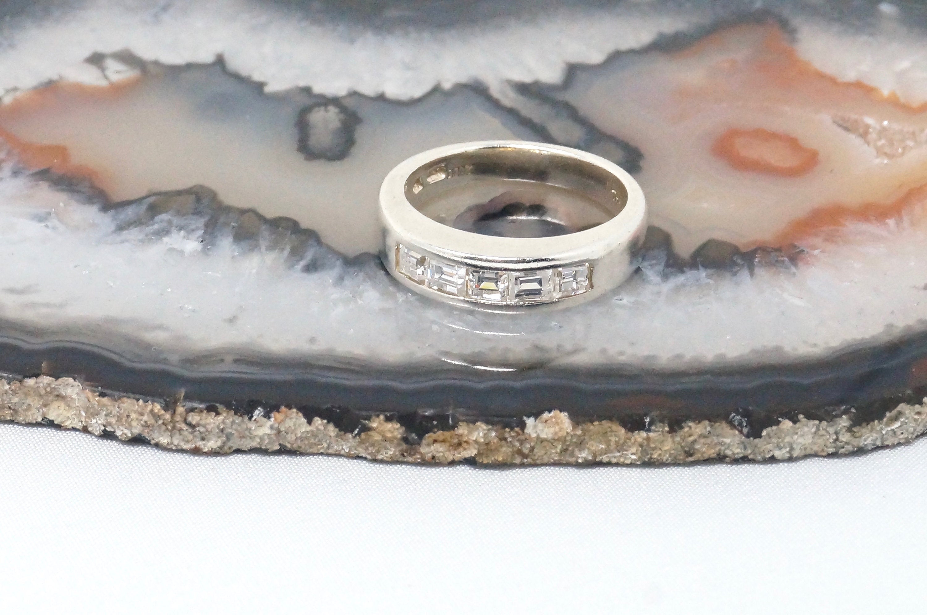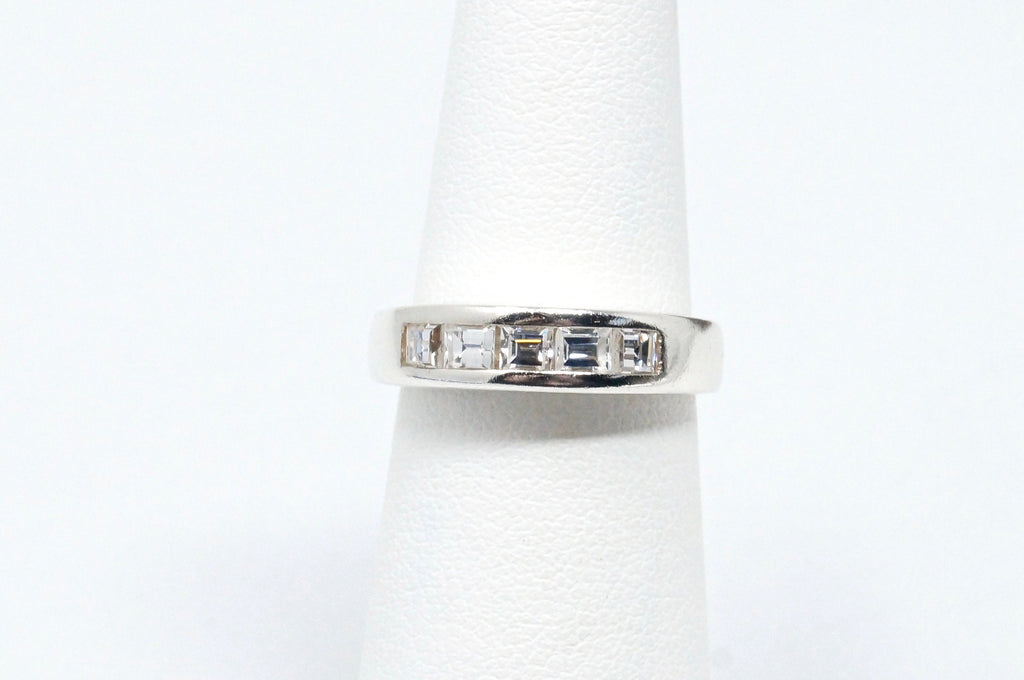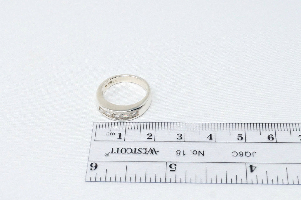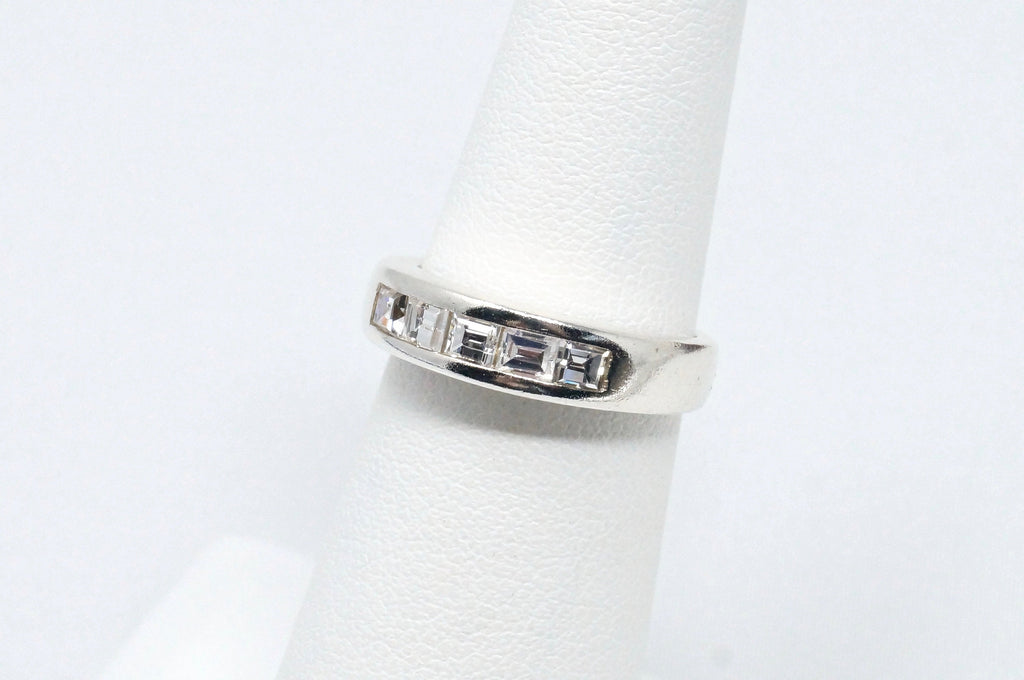 Lovely Vintage Cubic Zirconia Stones Sterling Silver Band Ring - Size 5
