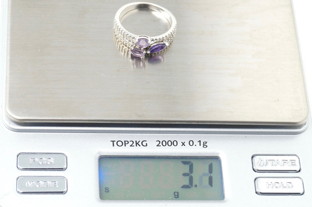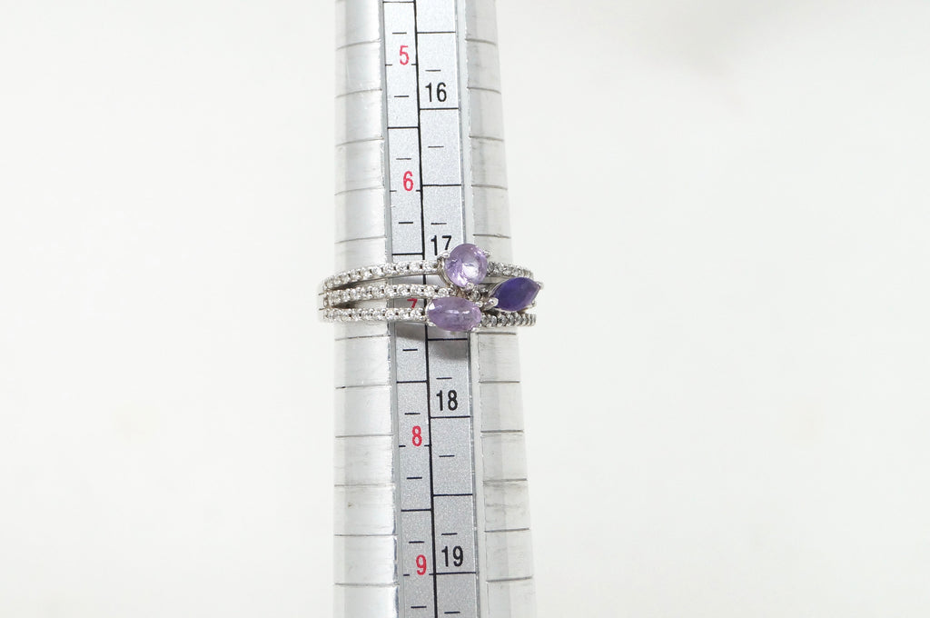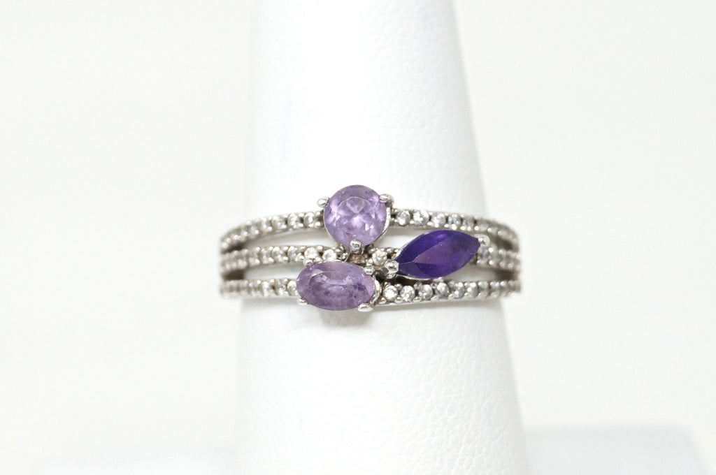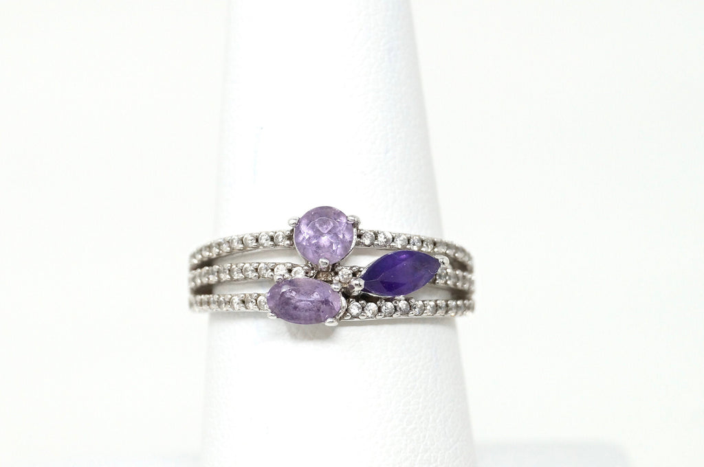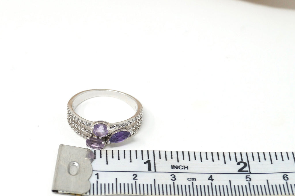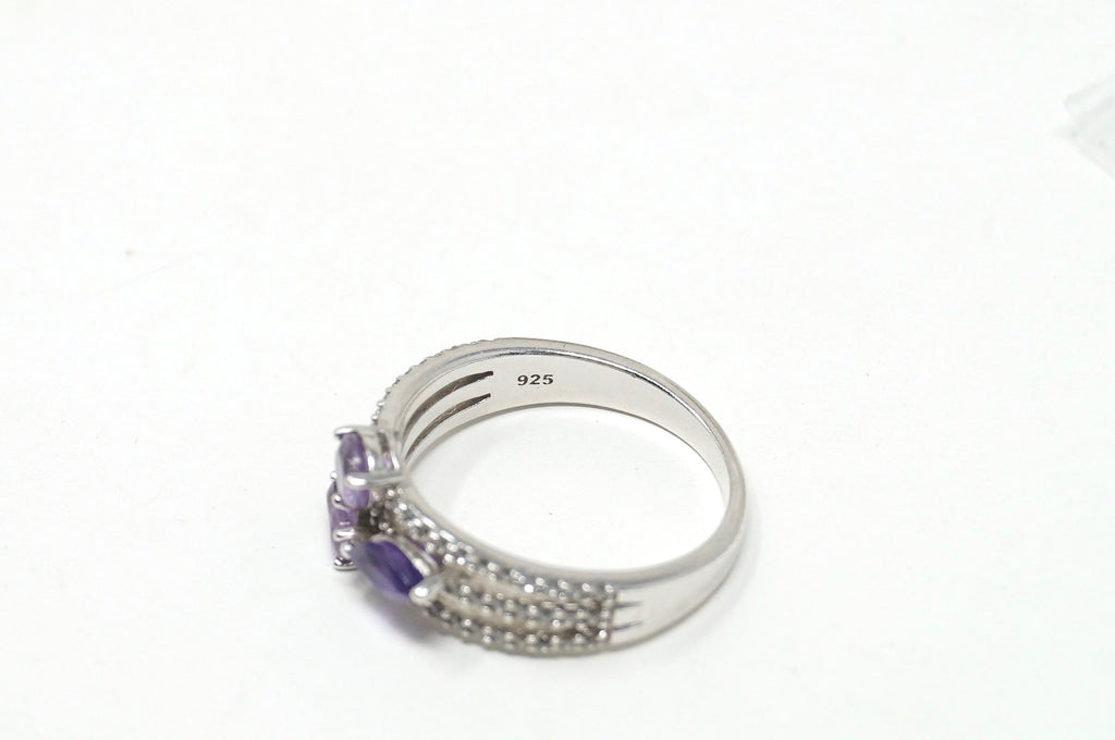 Lovely Vintage Designer RJ Amethyst Beaded Sterling Silver Ring - Size 7