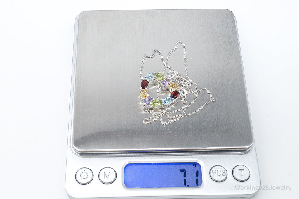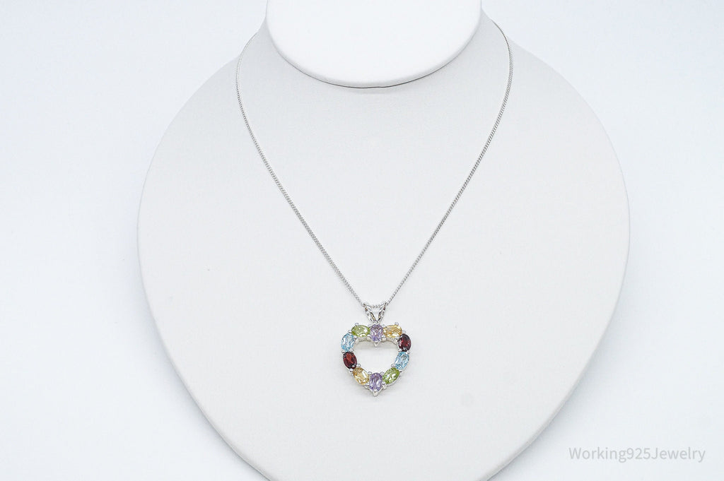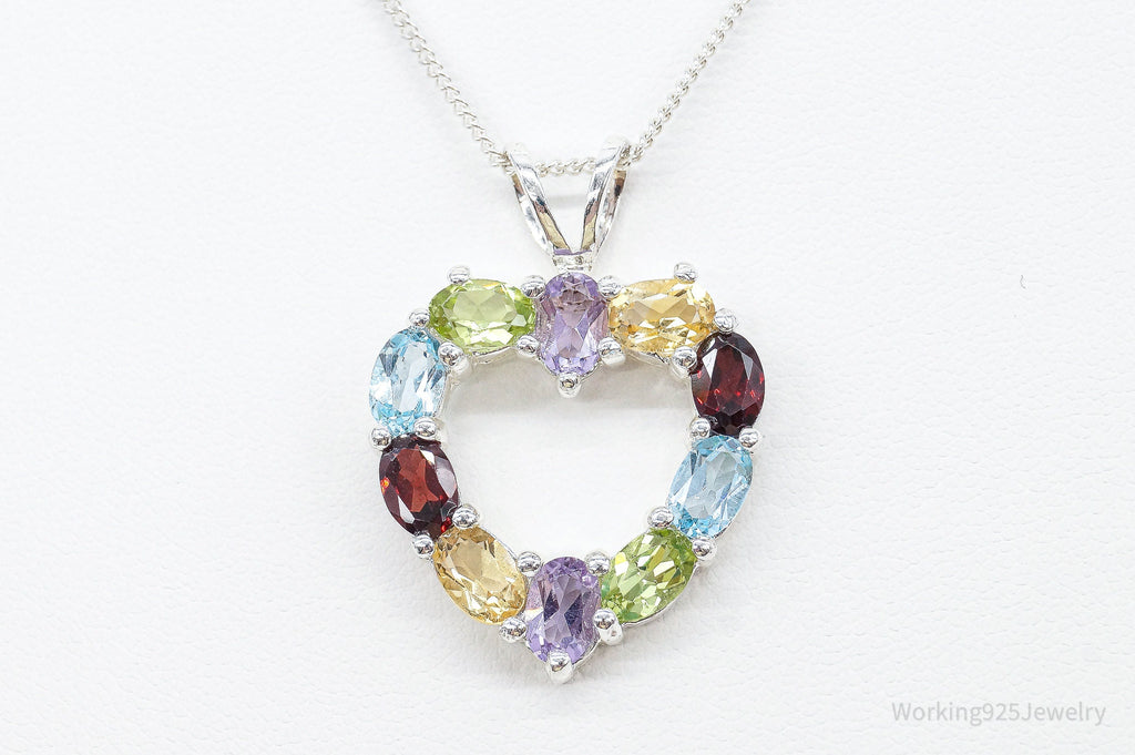 Multi Gemstone Large Heart Sterling Silver Necklace
