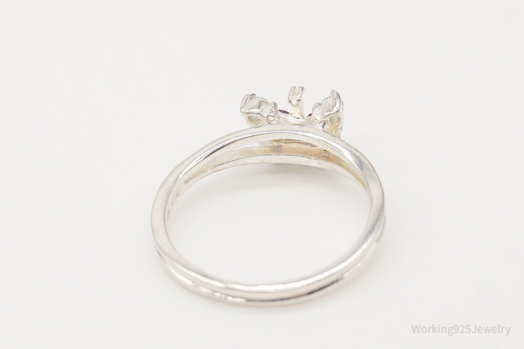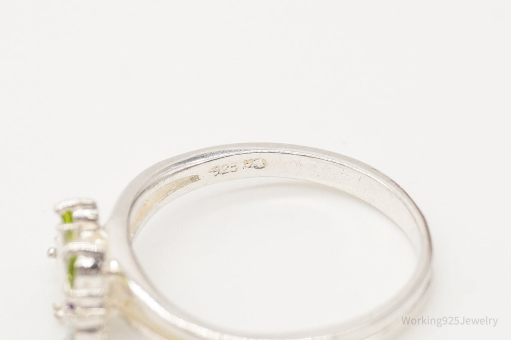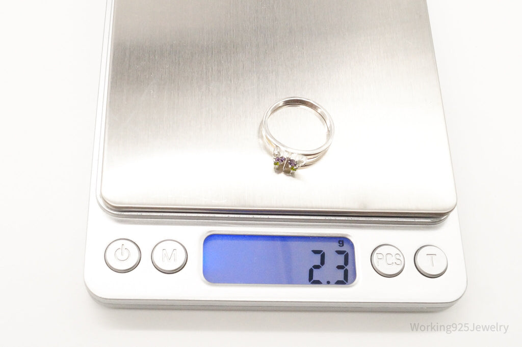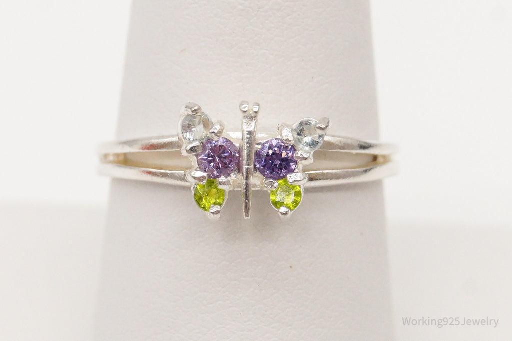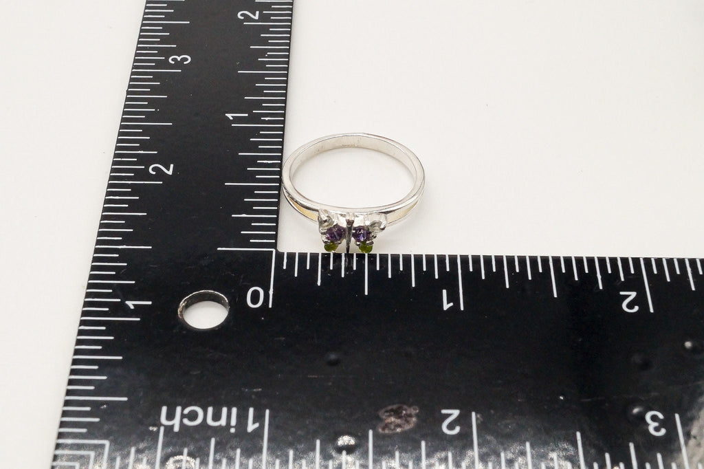 Multi Gemstone Sterling Silver Butterfly Ring - Size 8