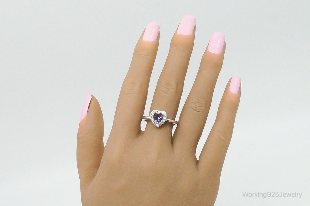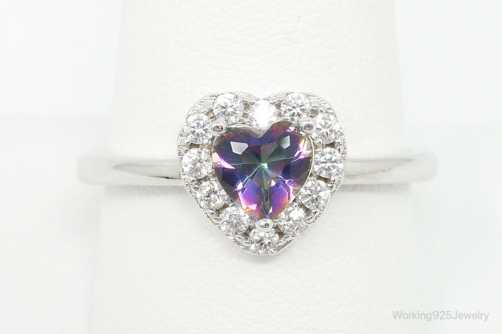 Mystic Topaz Heart Cubic Zirconia Sterling Silver Ring - Size 10.75